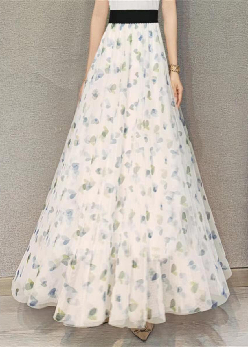 Fashion Green Print Elastic Waist Loose Tulle Skirt Spring