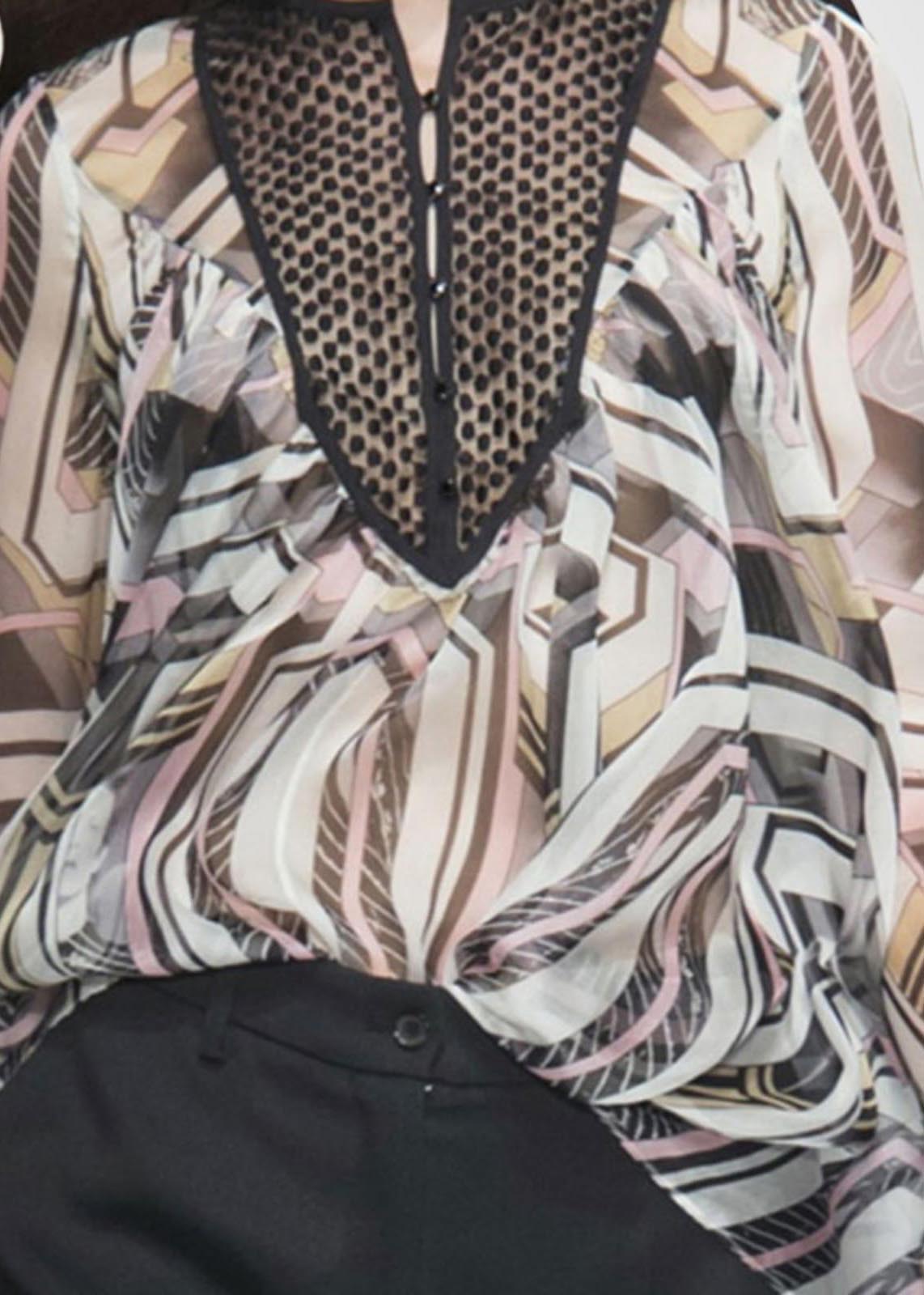 Chic Print Draping Chiffon Shirt Top Lantern Sleeve
