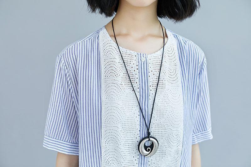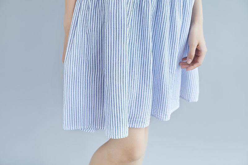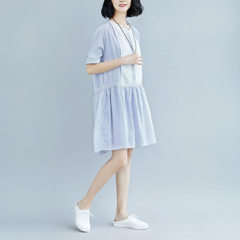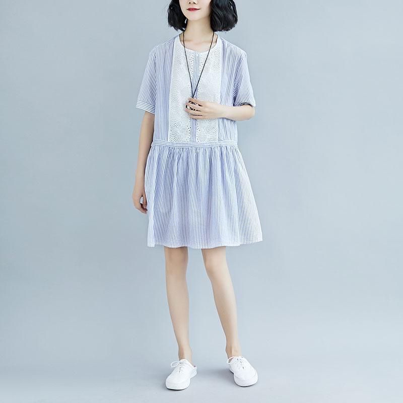 Summer Stripe Short Sleeve Casual Hollow Dress