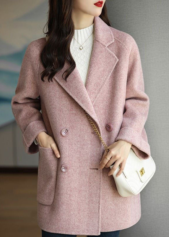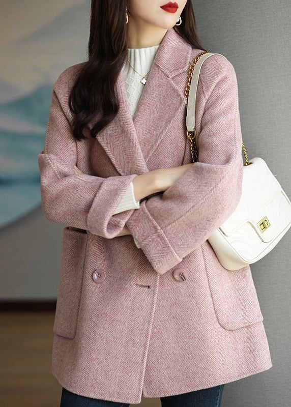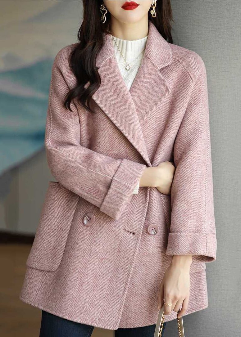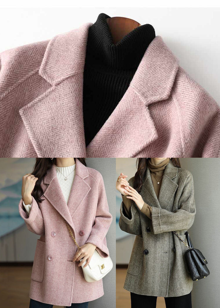 Art Pink Lapel Double Breast Thick Woolen Trench Fall