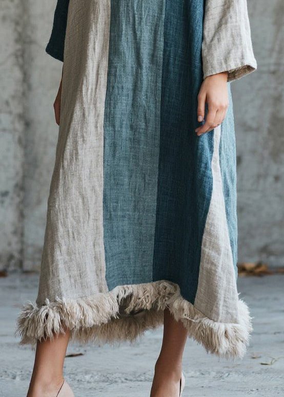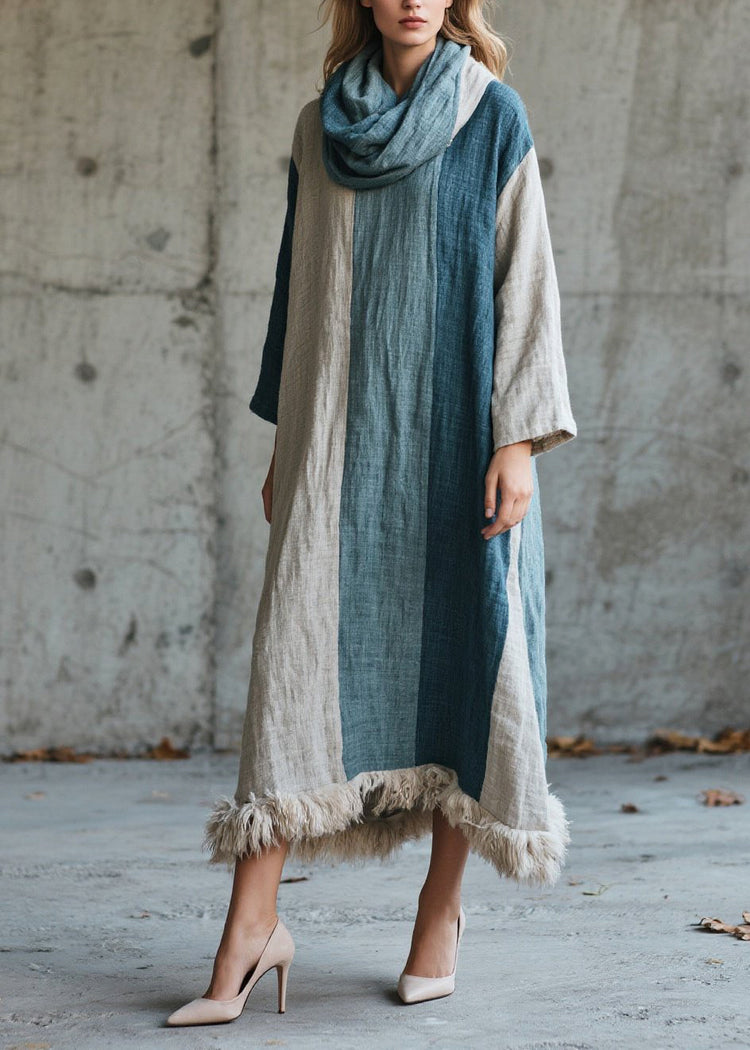 Bohemian Mixed Color Oversized Patchwork Faux Fur Maxi Dress Fall