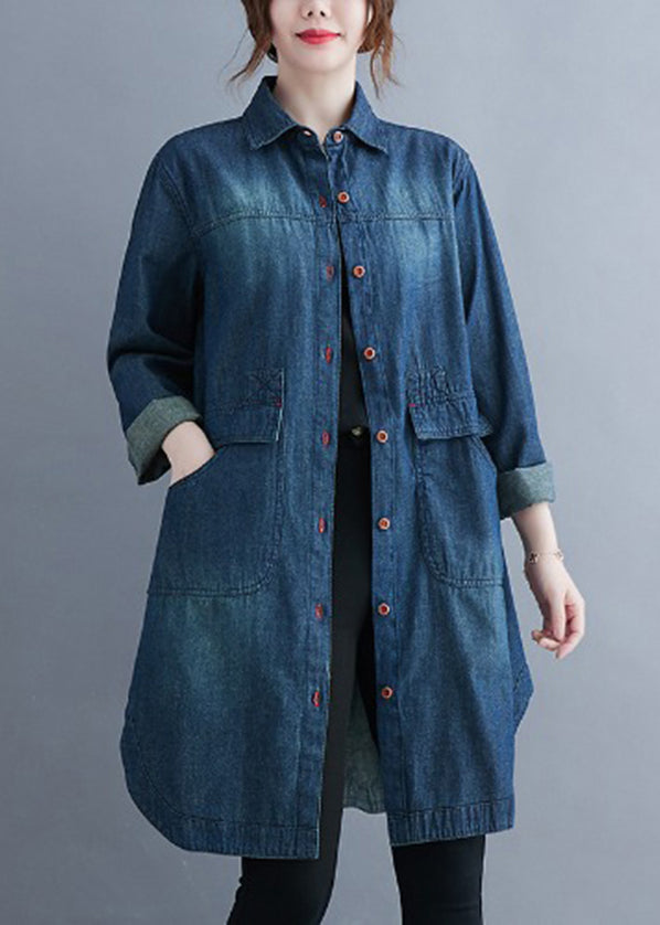 Classy Blue Peter Pan Collar Pockets Denim Coats Long Sleeve