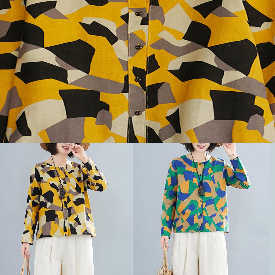 French O Neck Button Down Shirts Inspiration Yellow Geometric Top
