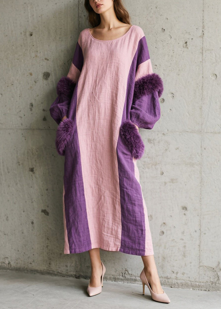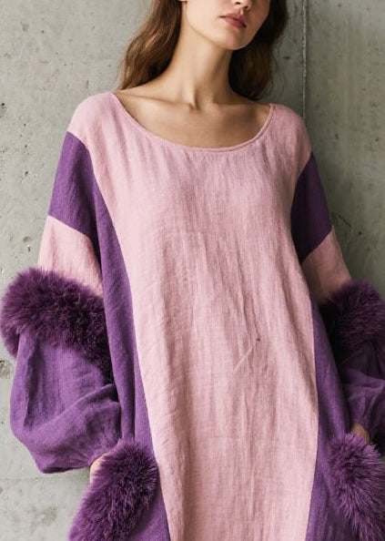Italian Colorblock Oversized Patchwork Faux Fur Holiday Dress Fall