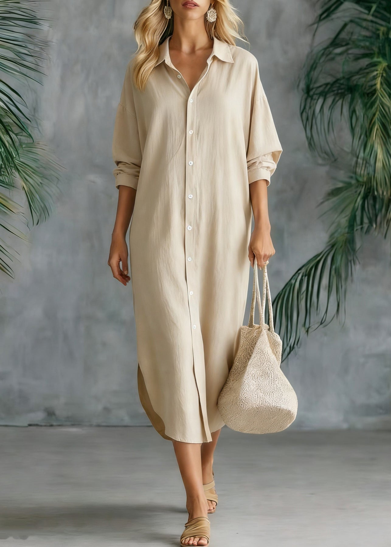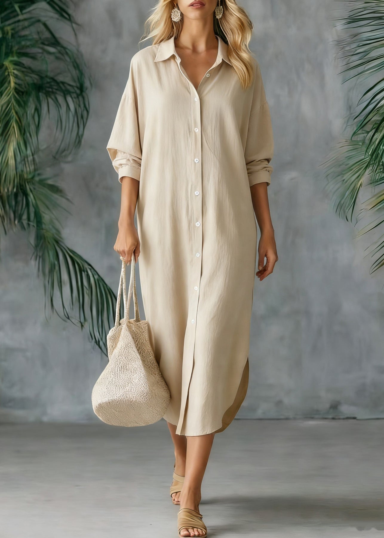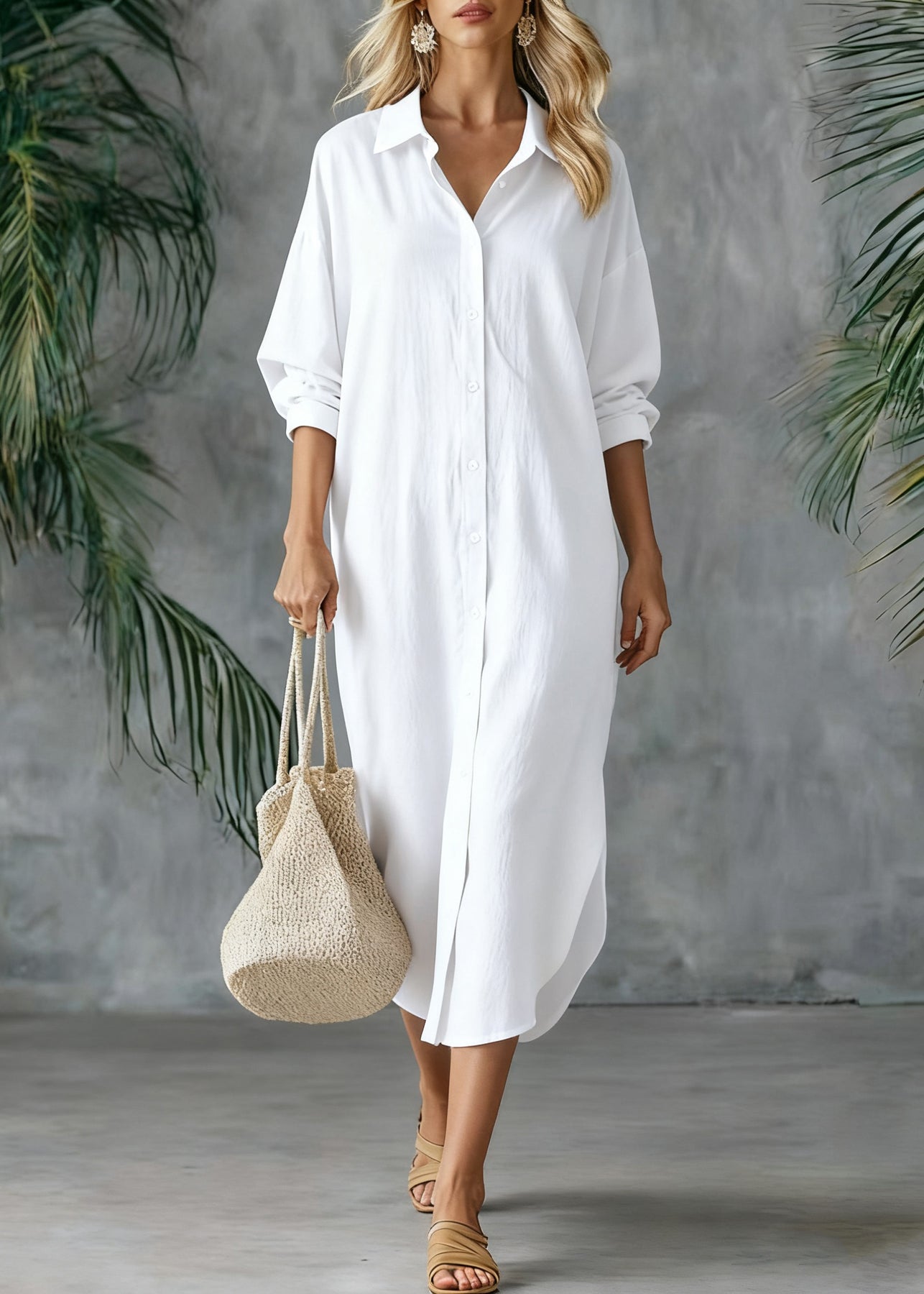 Loose White Peter Pan Collar Button Side Open Linen Shirts Dresses Spring