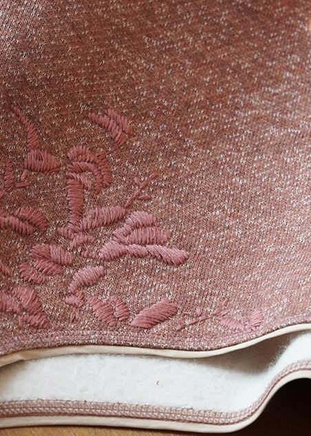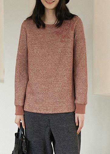 Modern Brown Embroidery Tunic Top O Neck Midi Spring Blouse