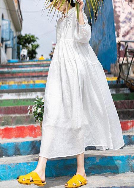 Women White Peter Pan Collar Button Vacation Summer Linen Dress