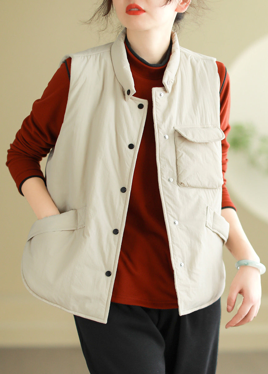 Women Wine Red Button Pockets Cotton Filled Waistcoat Sleeveless