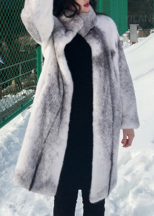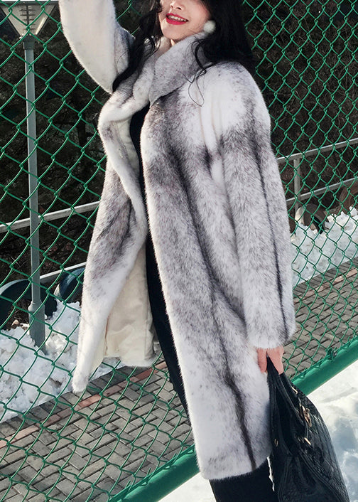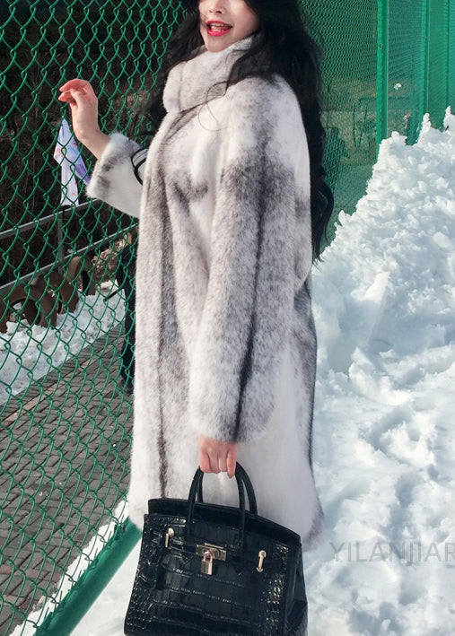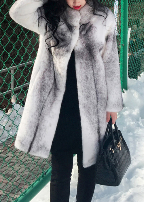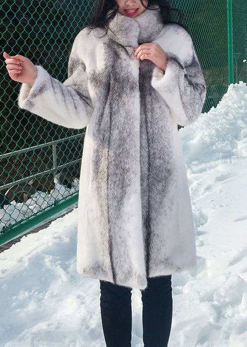 French White Stand Collar Pockets Mink Hair Coats Winter