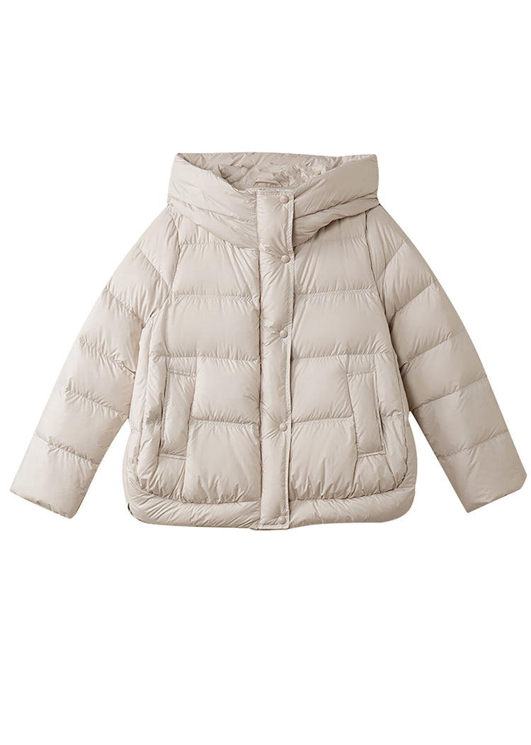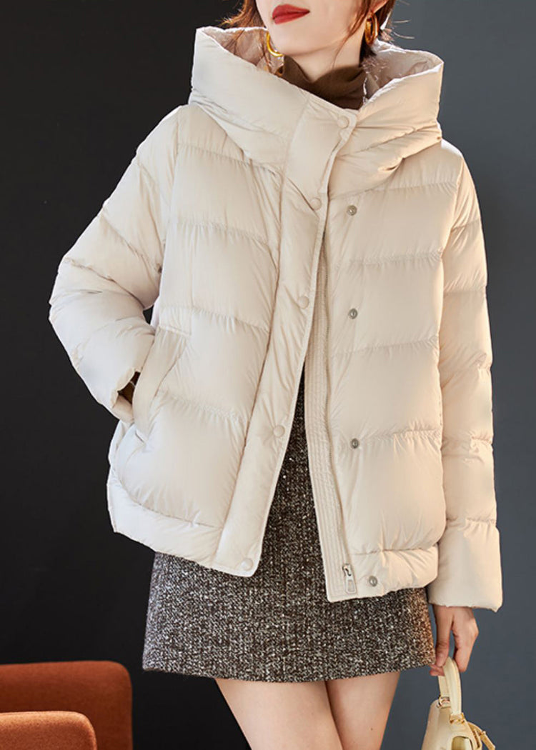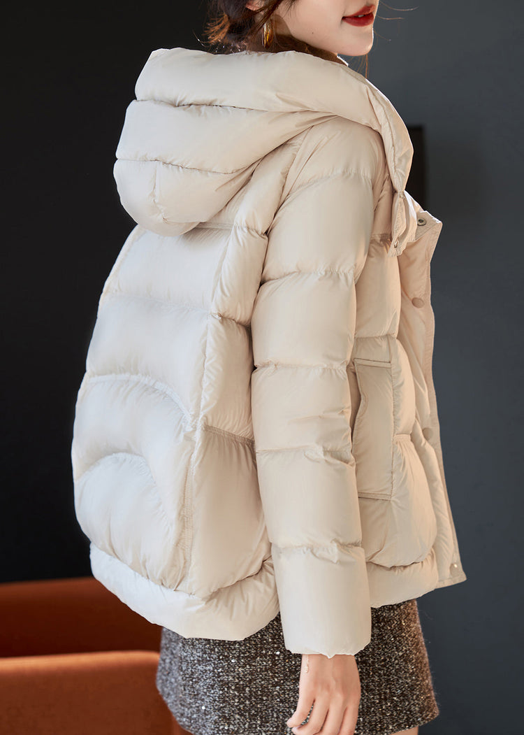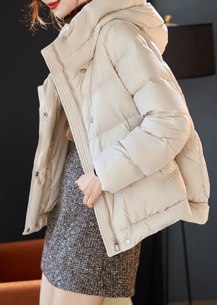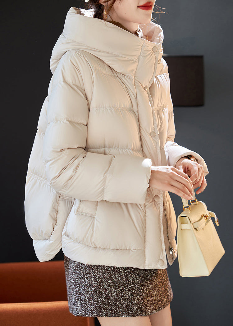 Stylish Beige Hooded Duck Down Puffer Coat Winter