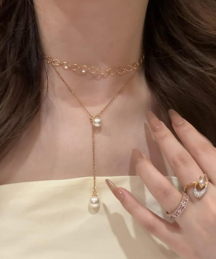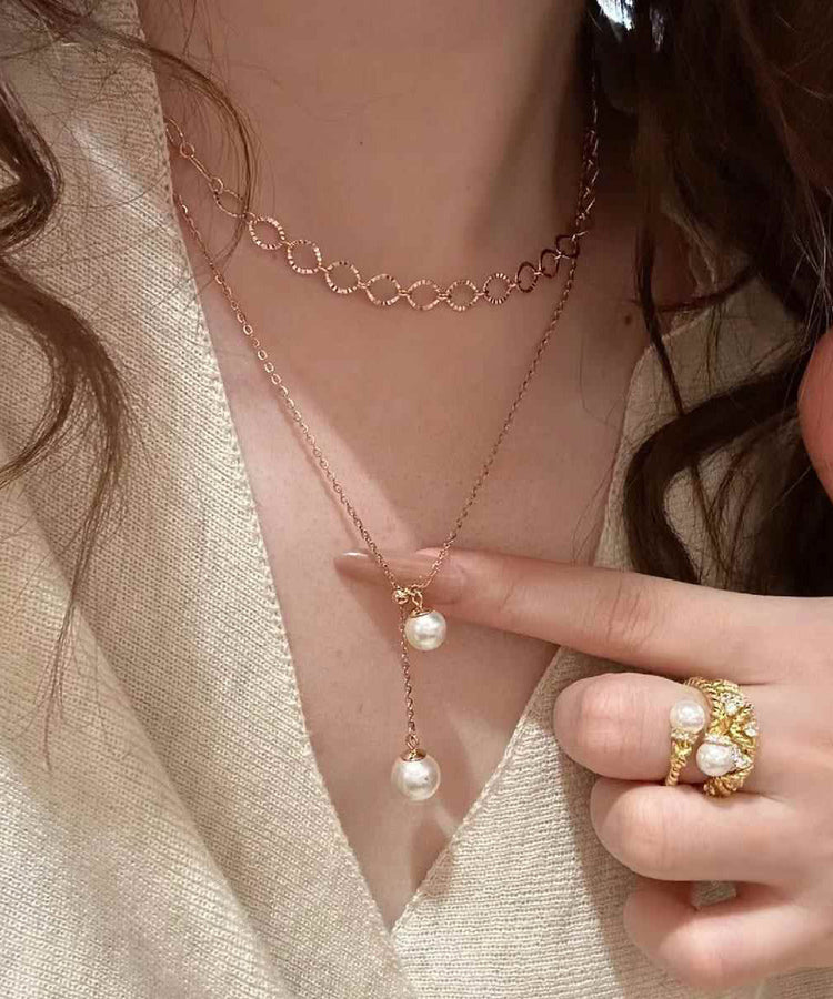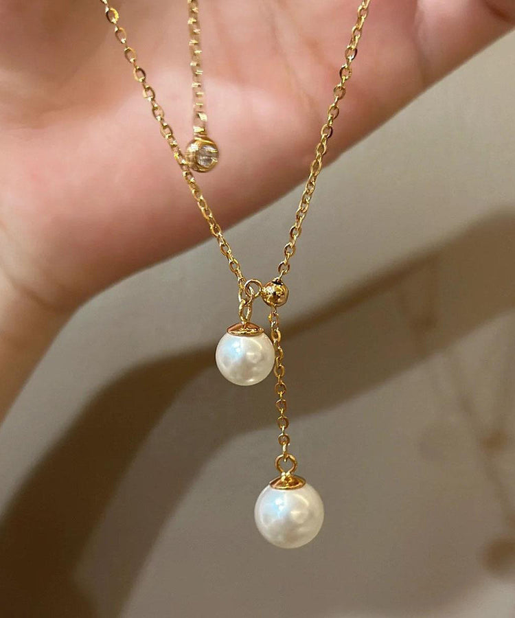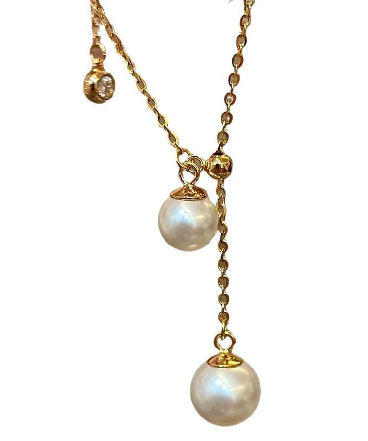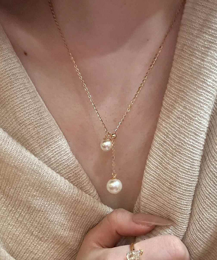 Elegant White Sterling Silver Overgild Pearl Tassel Pendant Necklace