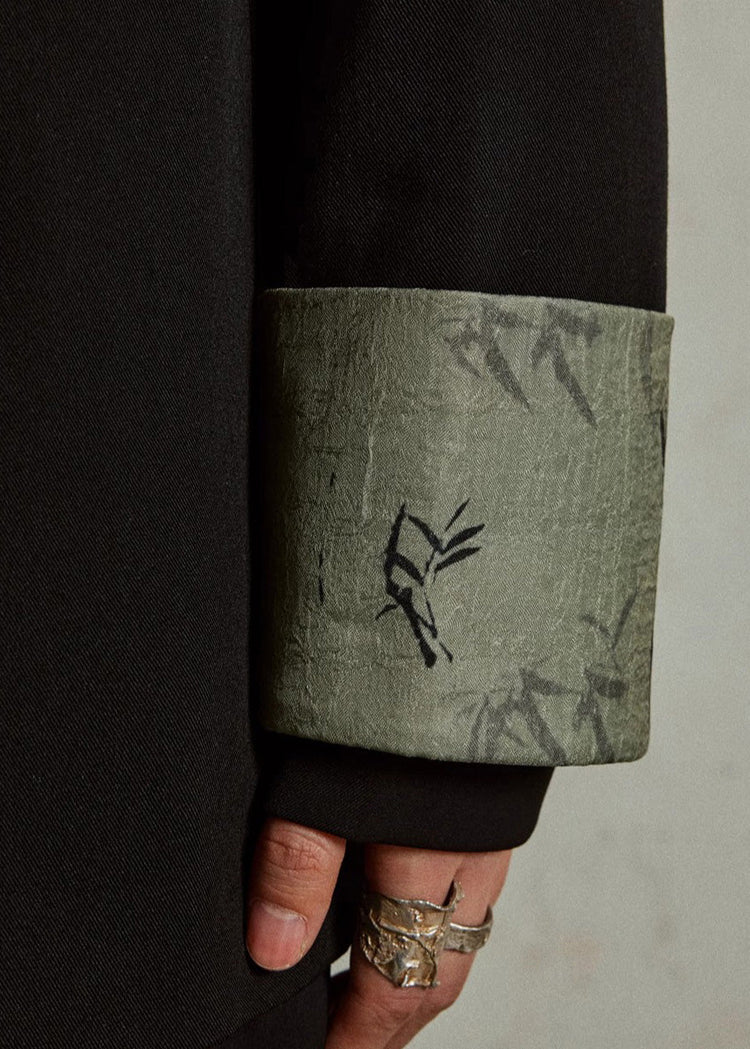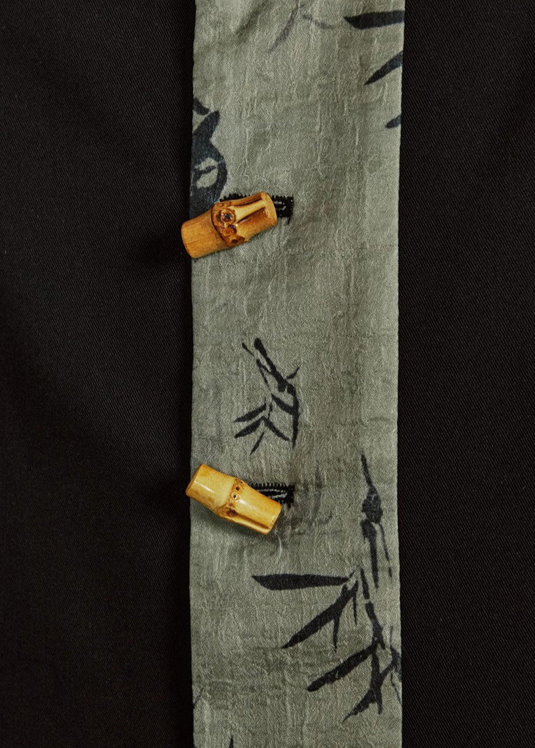 Chinese Style Black Stand Collar Print Button Coats Fall