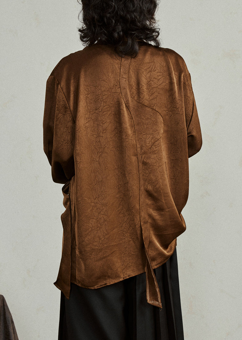 Brown Shirt Ribbon Peter Pan Collar Fall