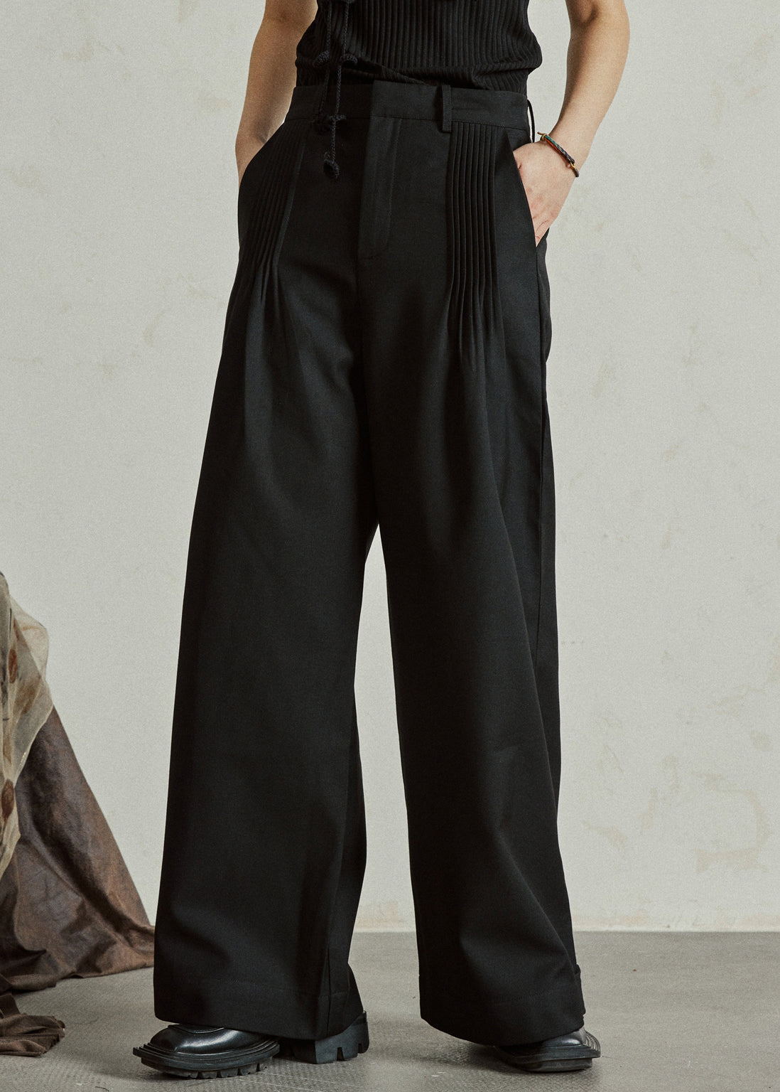 Black Wrinkled High Waist Wide Leg Pants