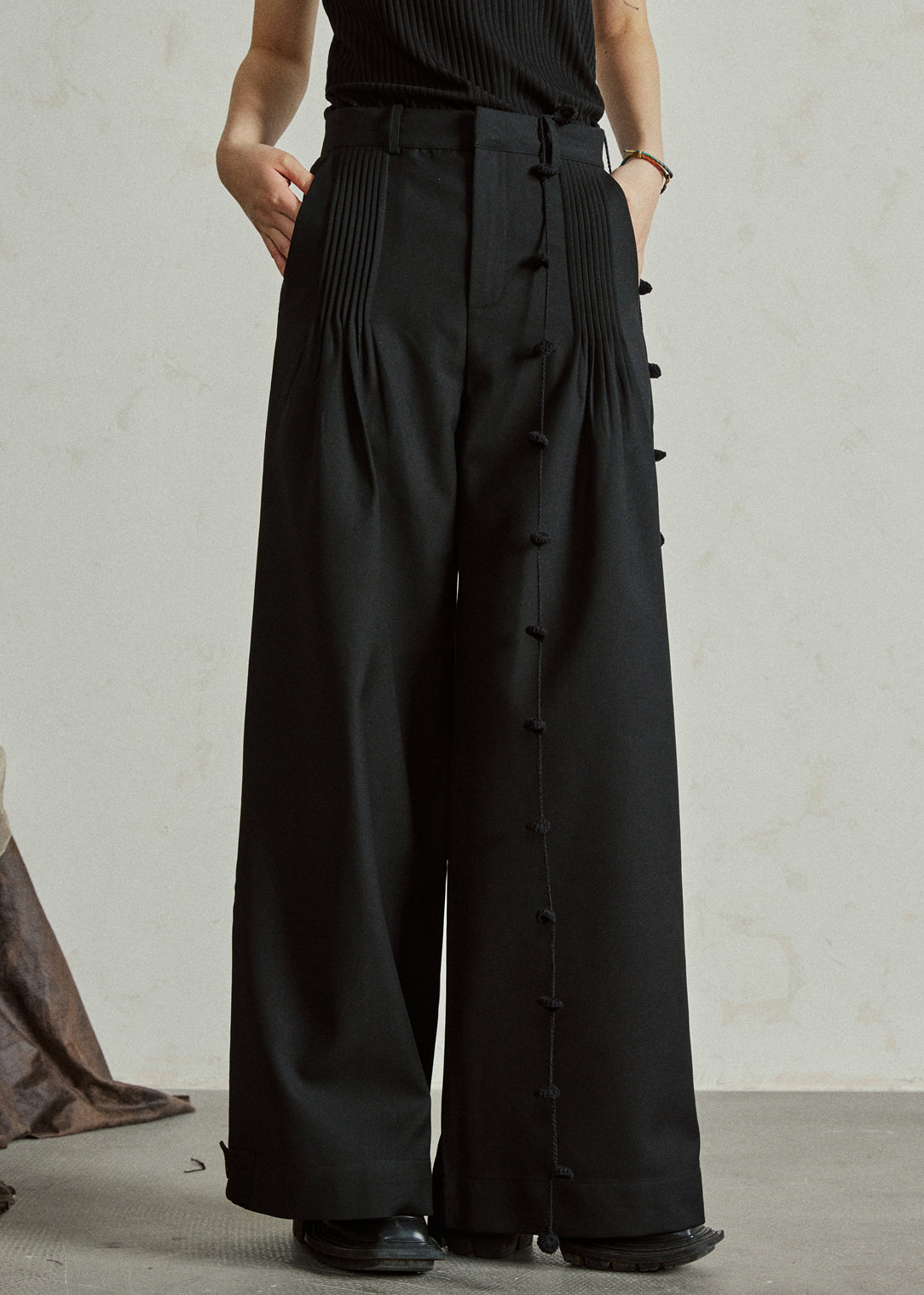 Handmade Black High Waist Pockets Draping Pants Skirt