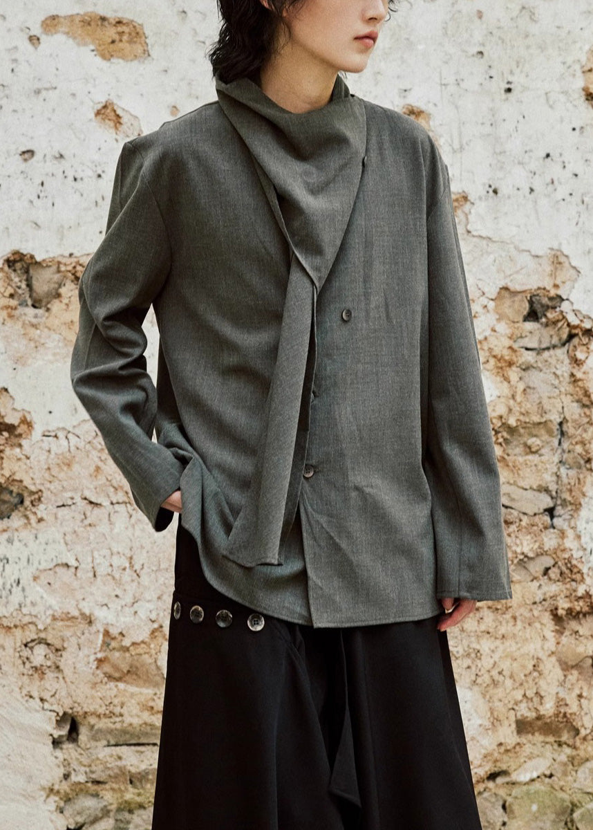 Chic Grey Bow Button Shirt Long Sleeve