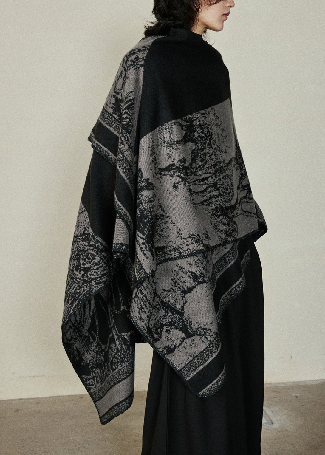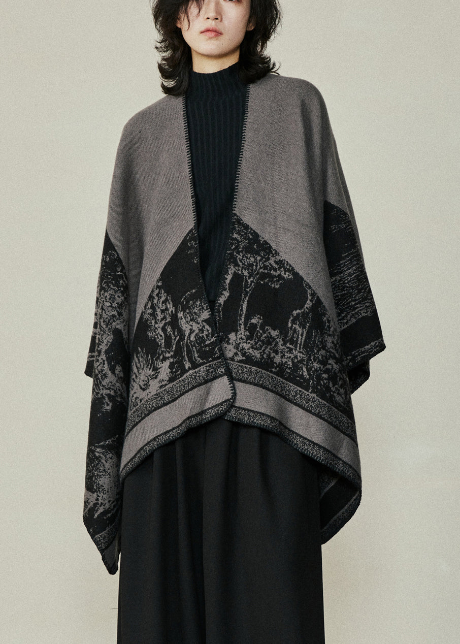 Organic Black V Neck Print Cotton Knit Shawl Coats Fal