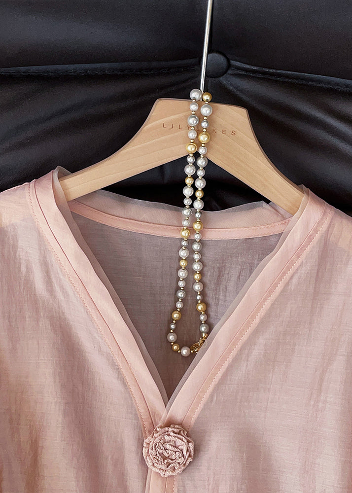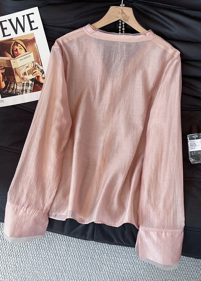 Bohemian Brick Red V Neck Floral Decorated Cotton Shirts Fall