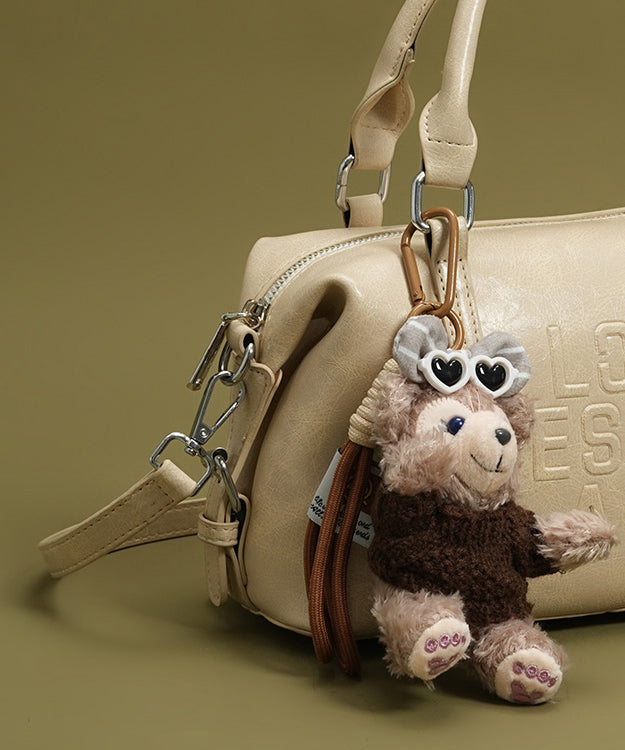 Boho Beige Letter Embossing Bear Decorated Faux Leather Tote Handbag