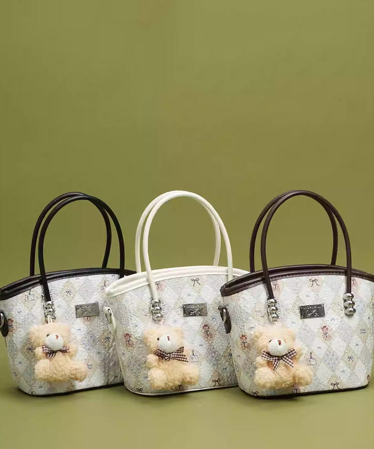 Cute White Jacquard Solid Durable Faux Leather Tote Handbag