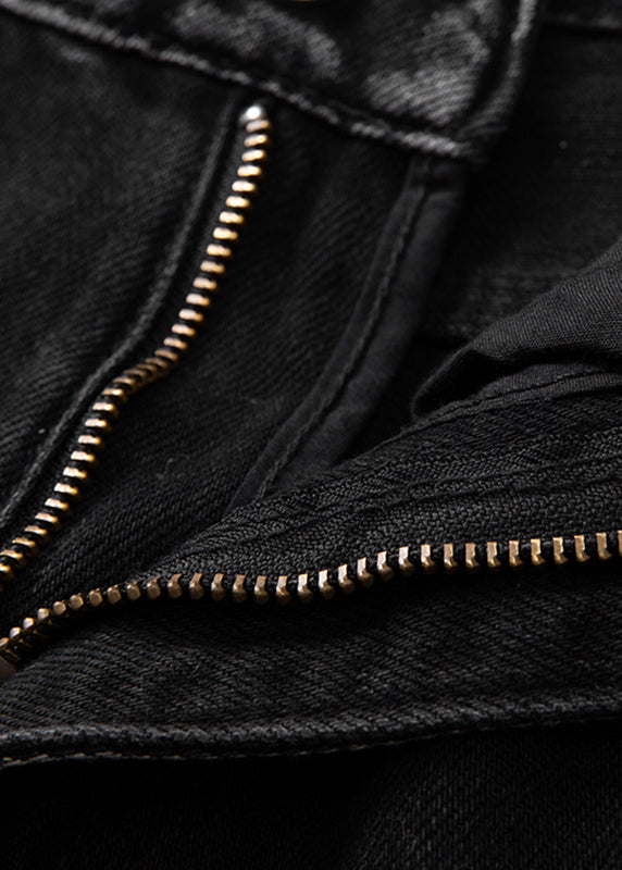 Style Black High Waist Pockets Patchwork Wide Leg Pants