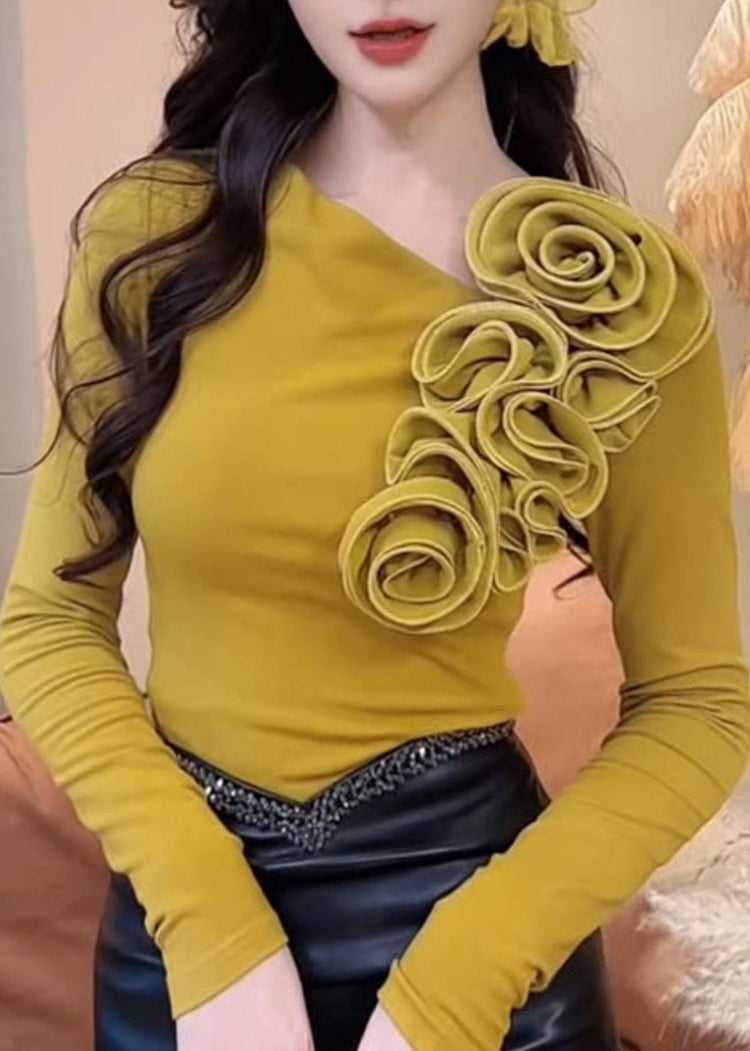 Women Yellow Floral Original Design Cotton T Shirts Fall