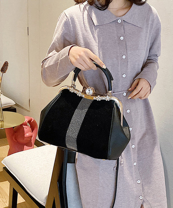 Boutique Black Zircon Patchwork Faux Leather Tote Handbag