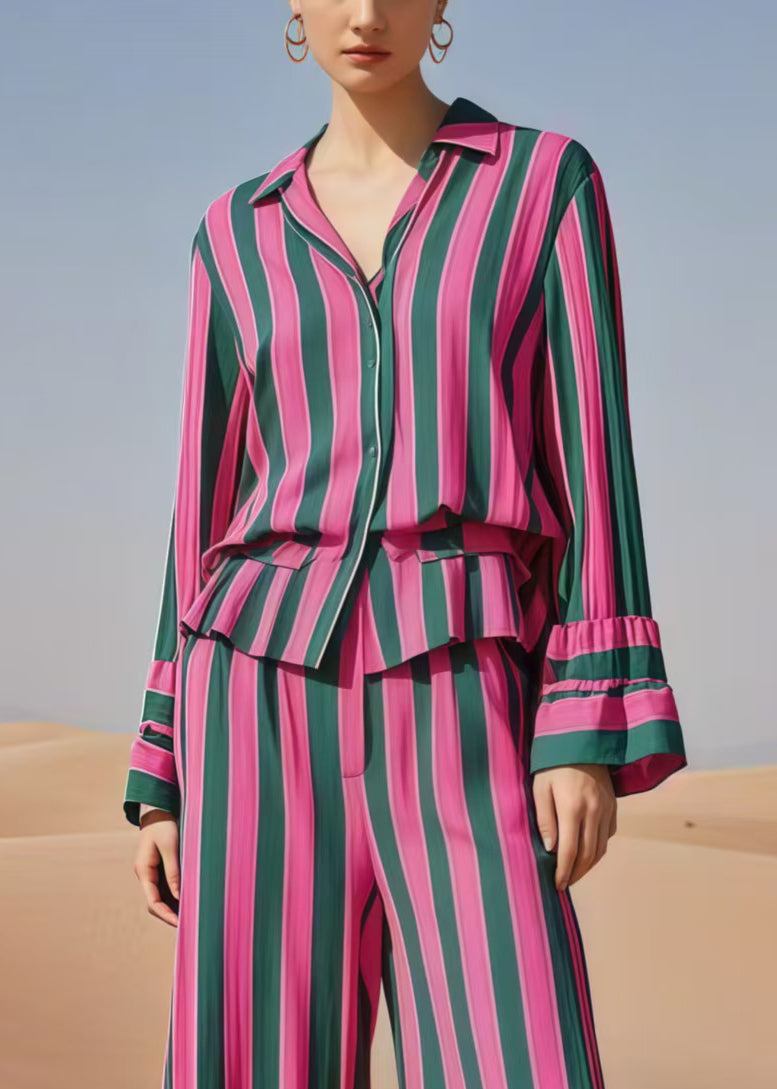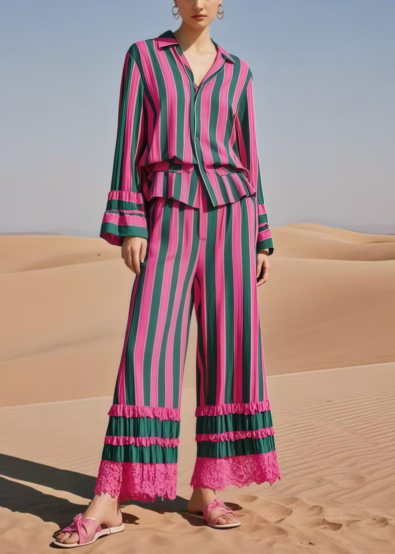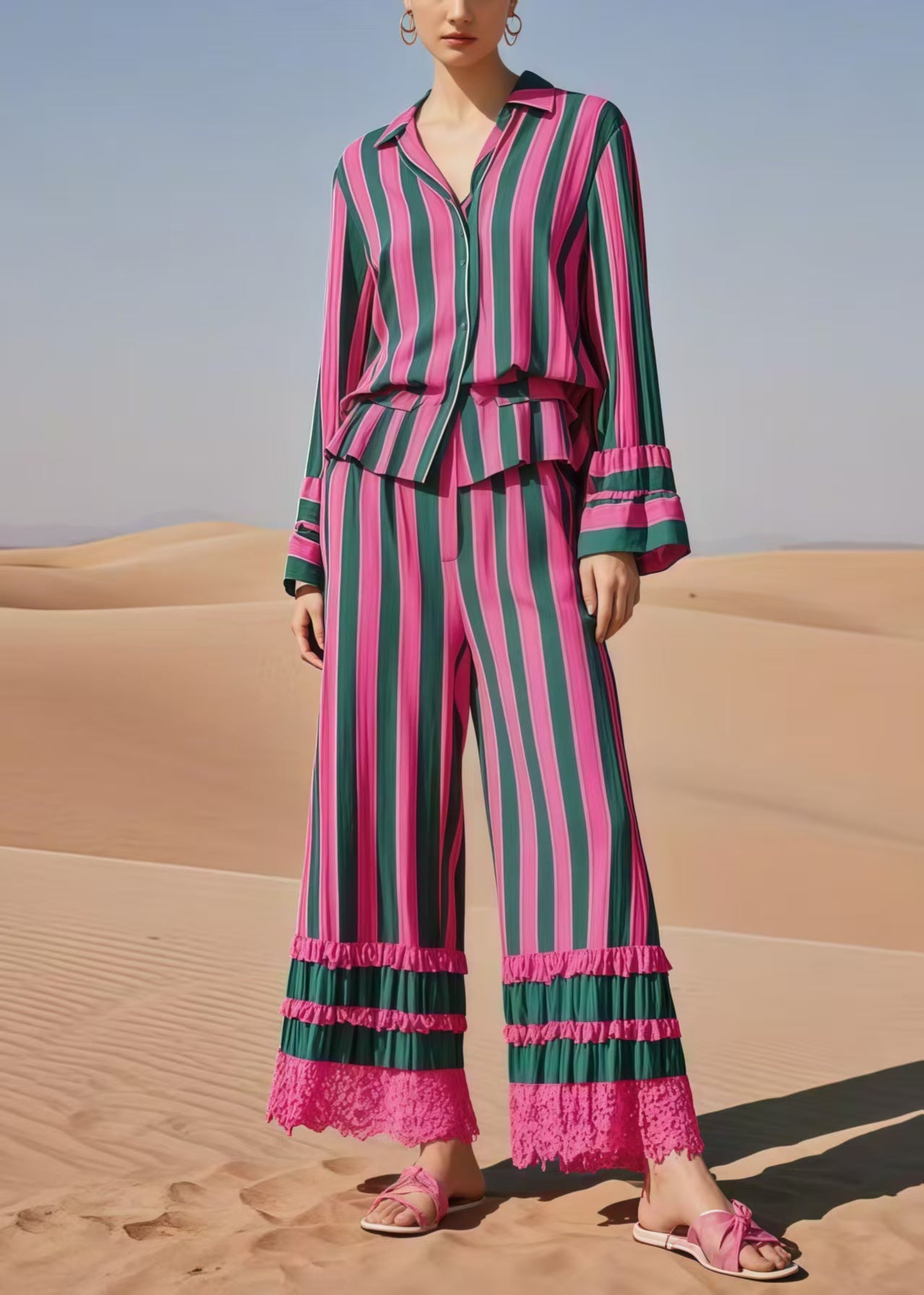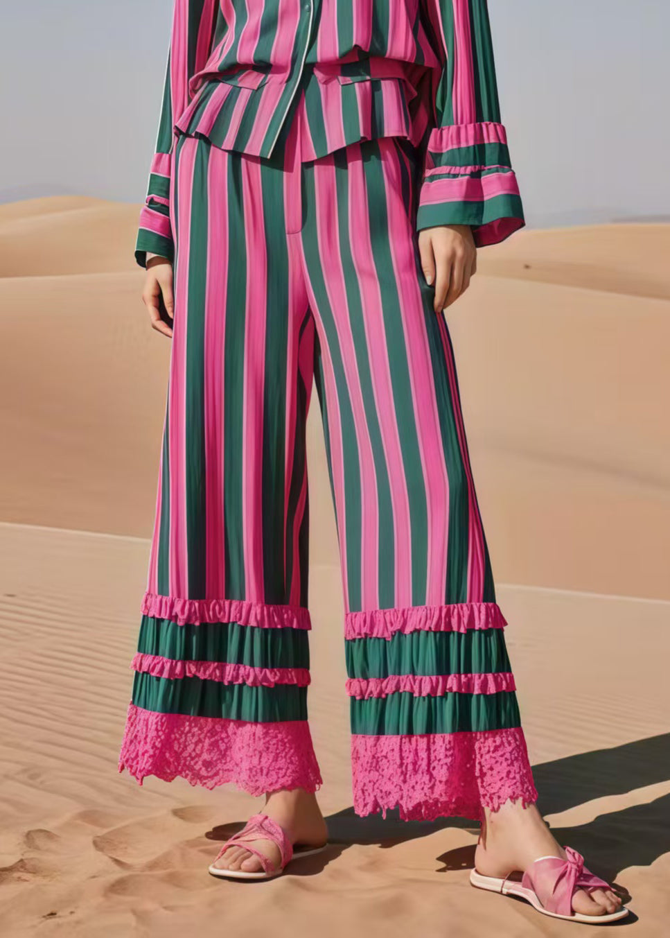 Bohemian Multicolour Striped Patchwork Lace Two Piece Suit Set Spring