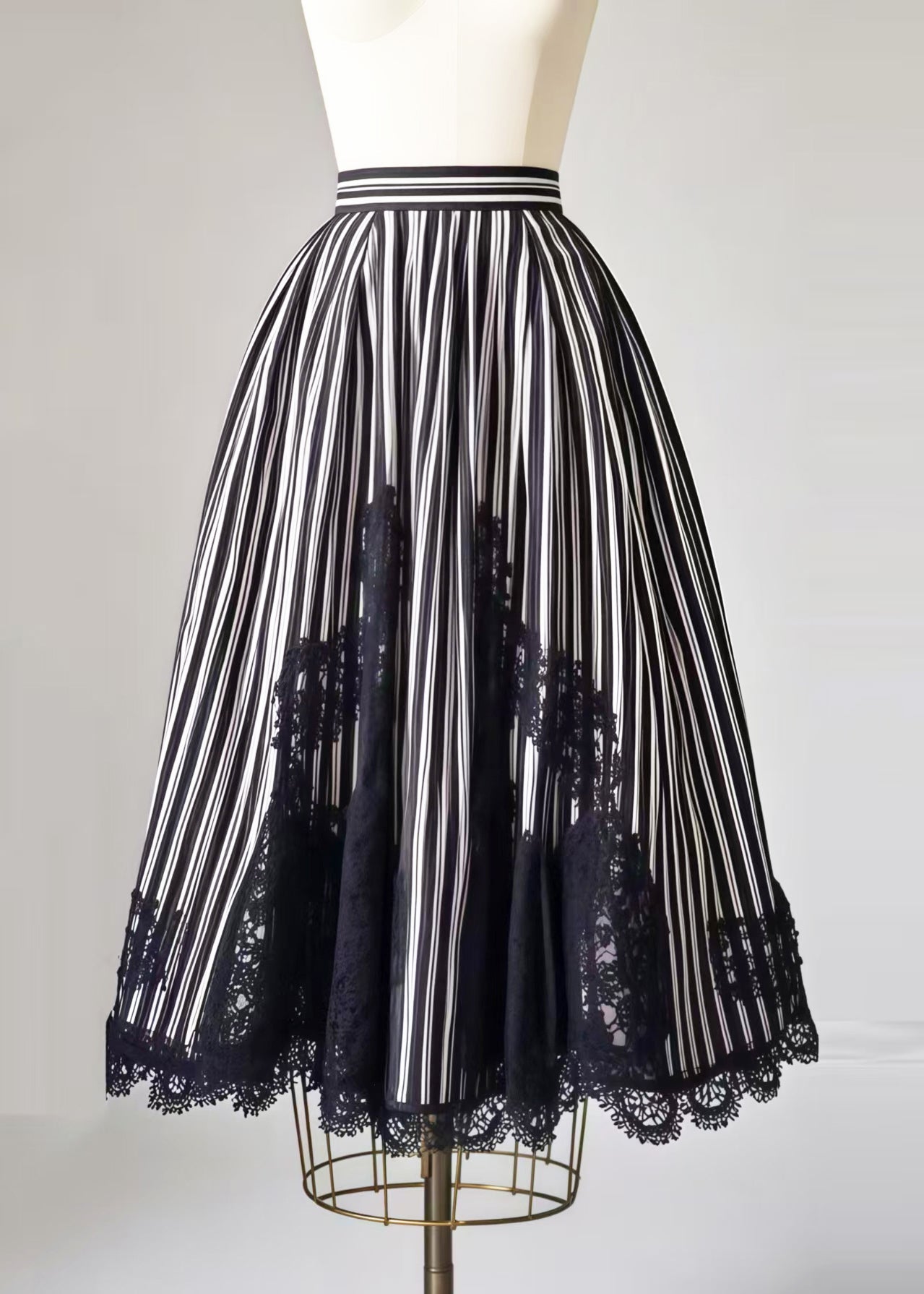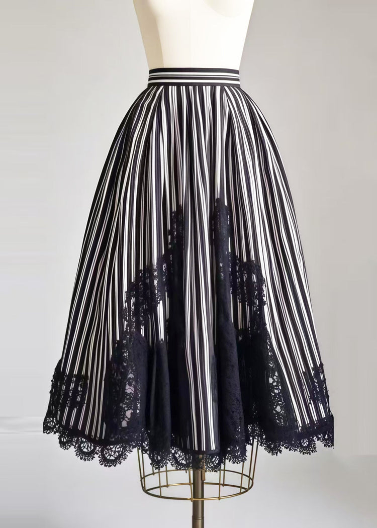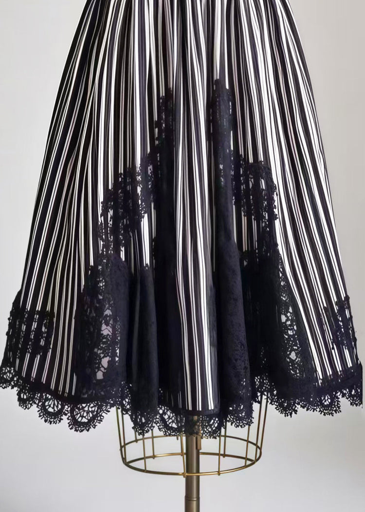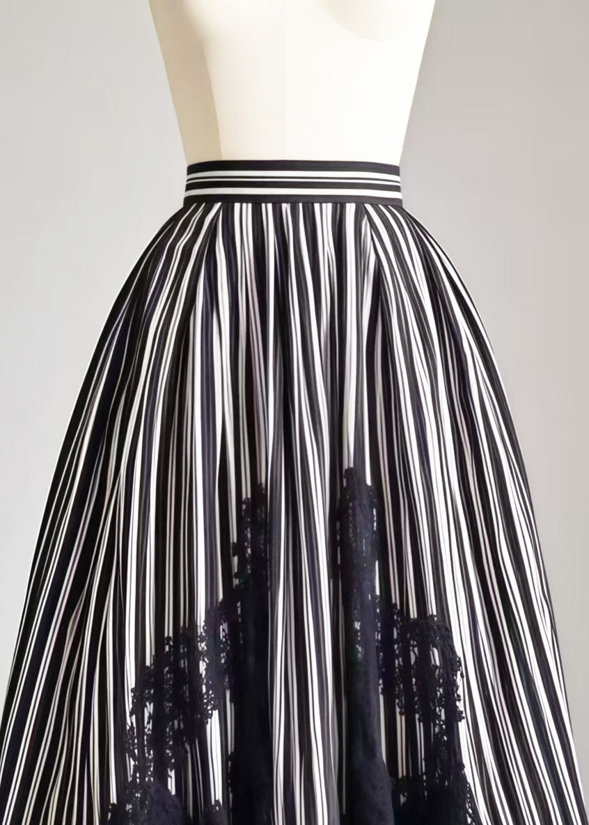 Boho Black Striped Patchwork Lace Exra Large Hem Skirt Summer