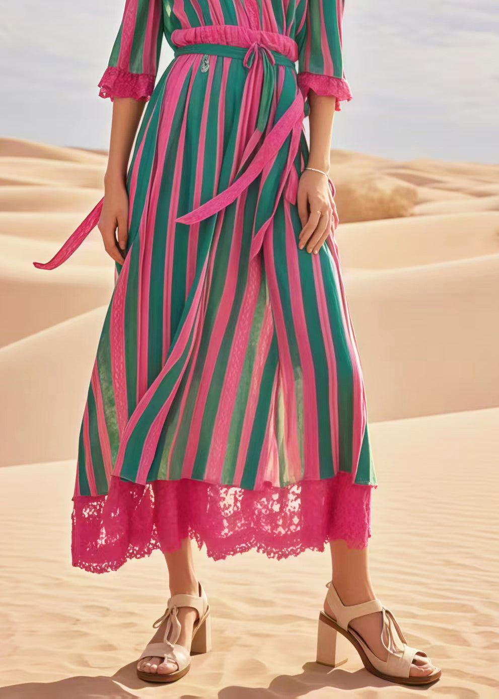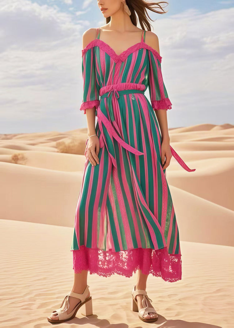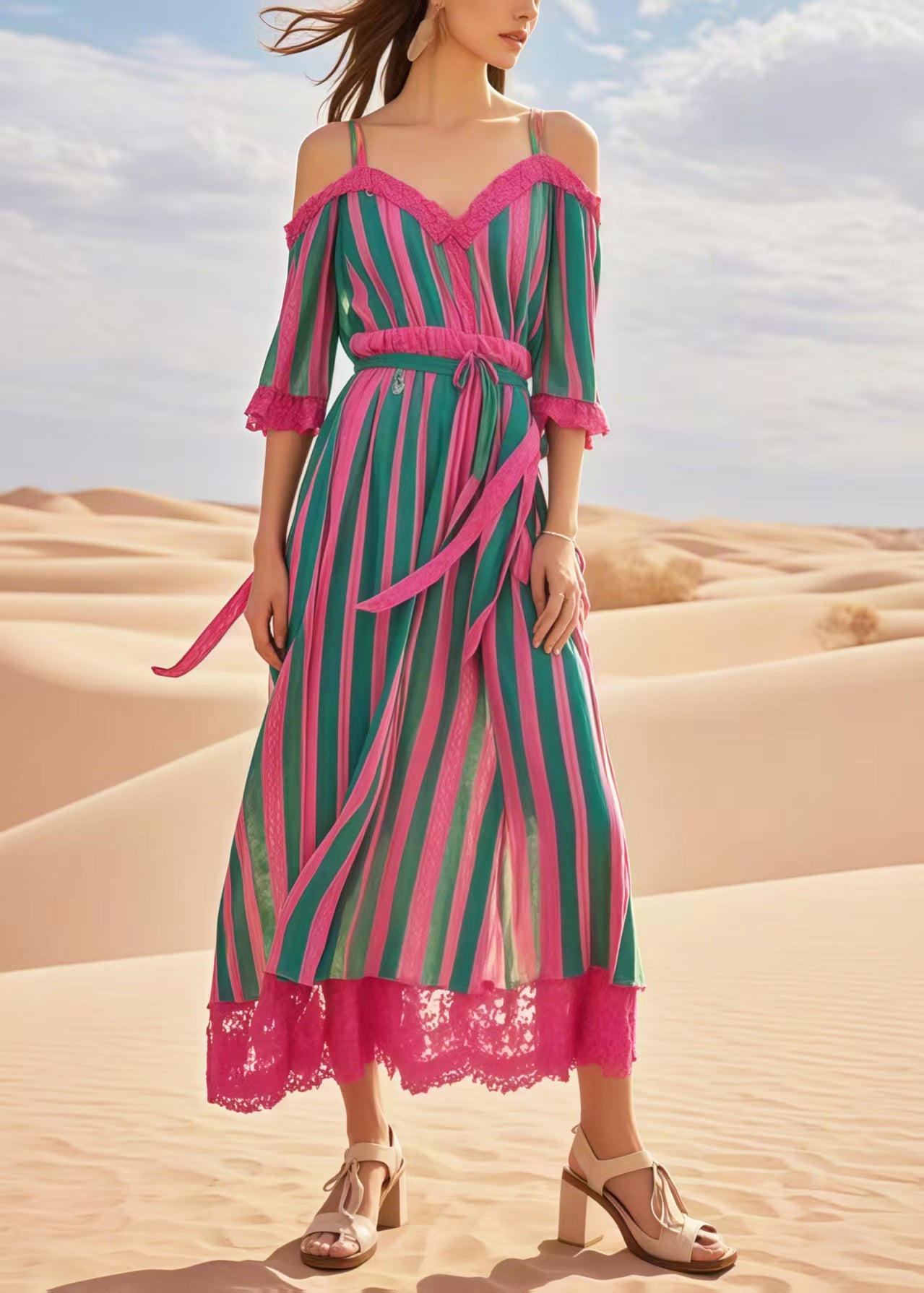 Boutique Multicolour Striped Backless Patchwork Lace Holiday Dresses Summer