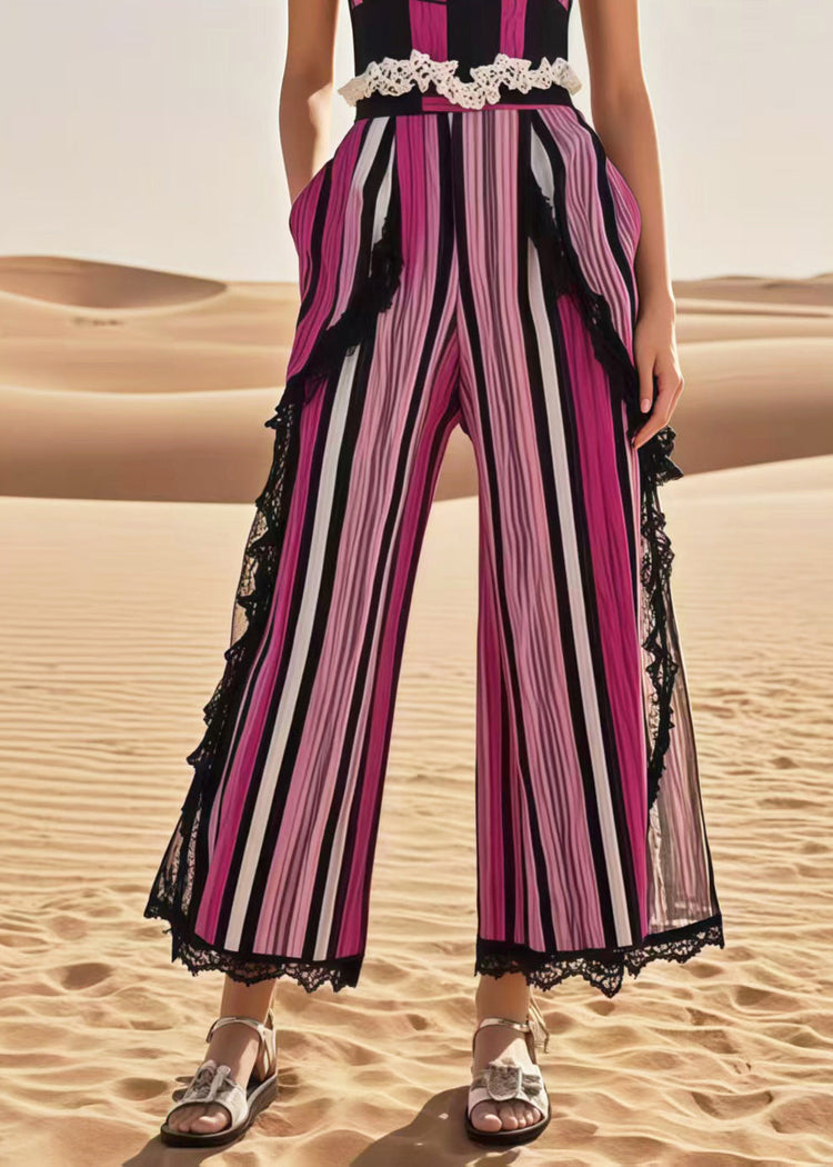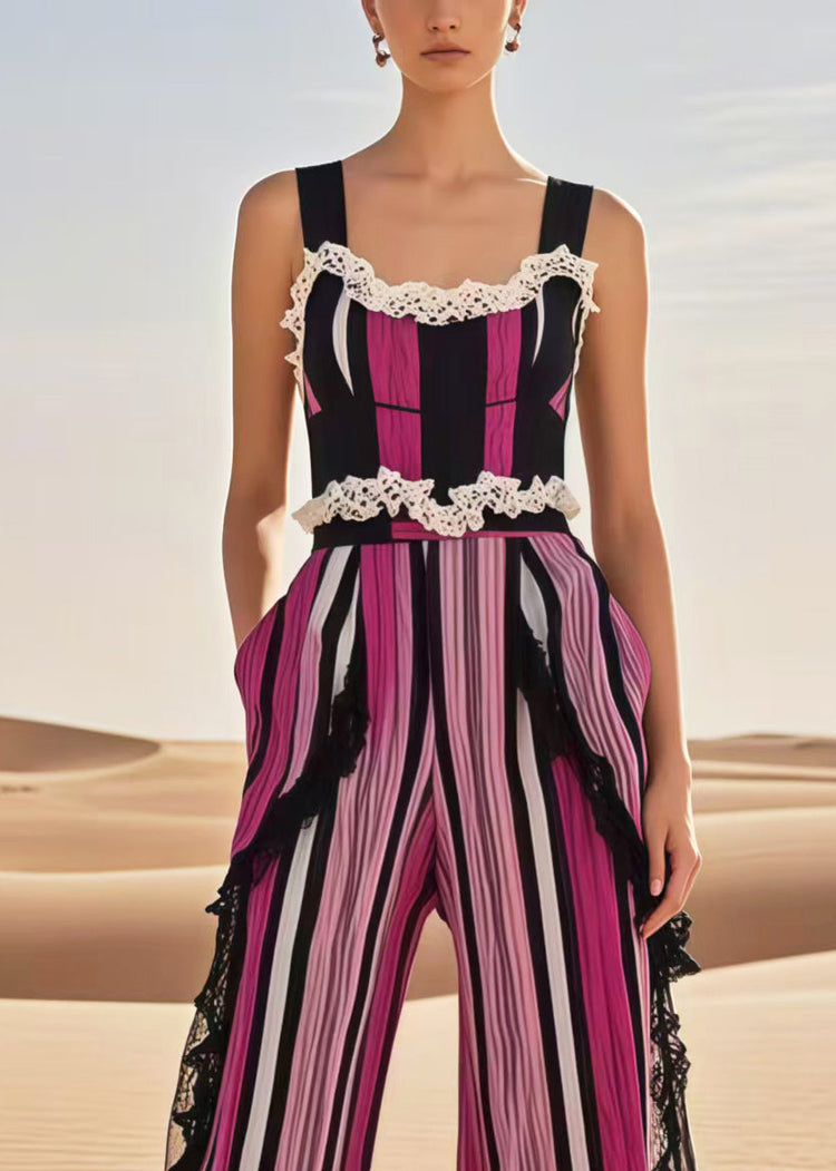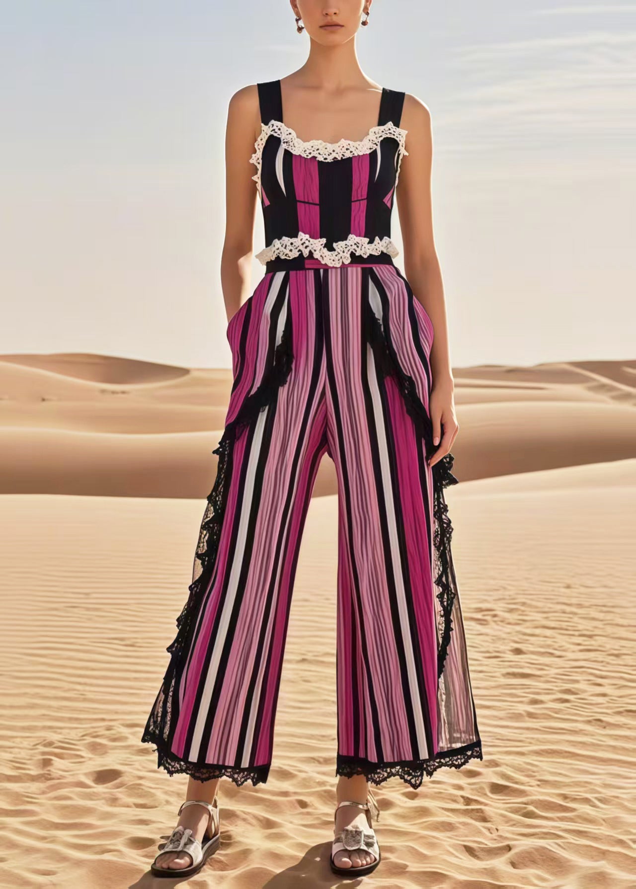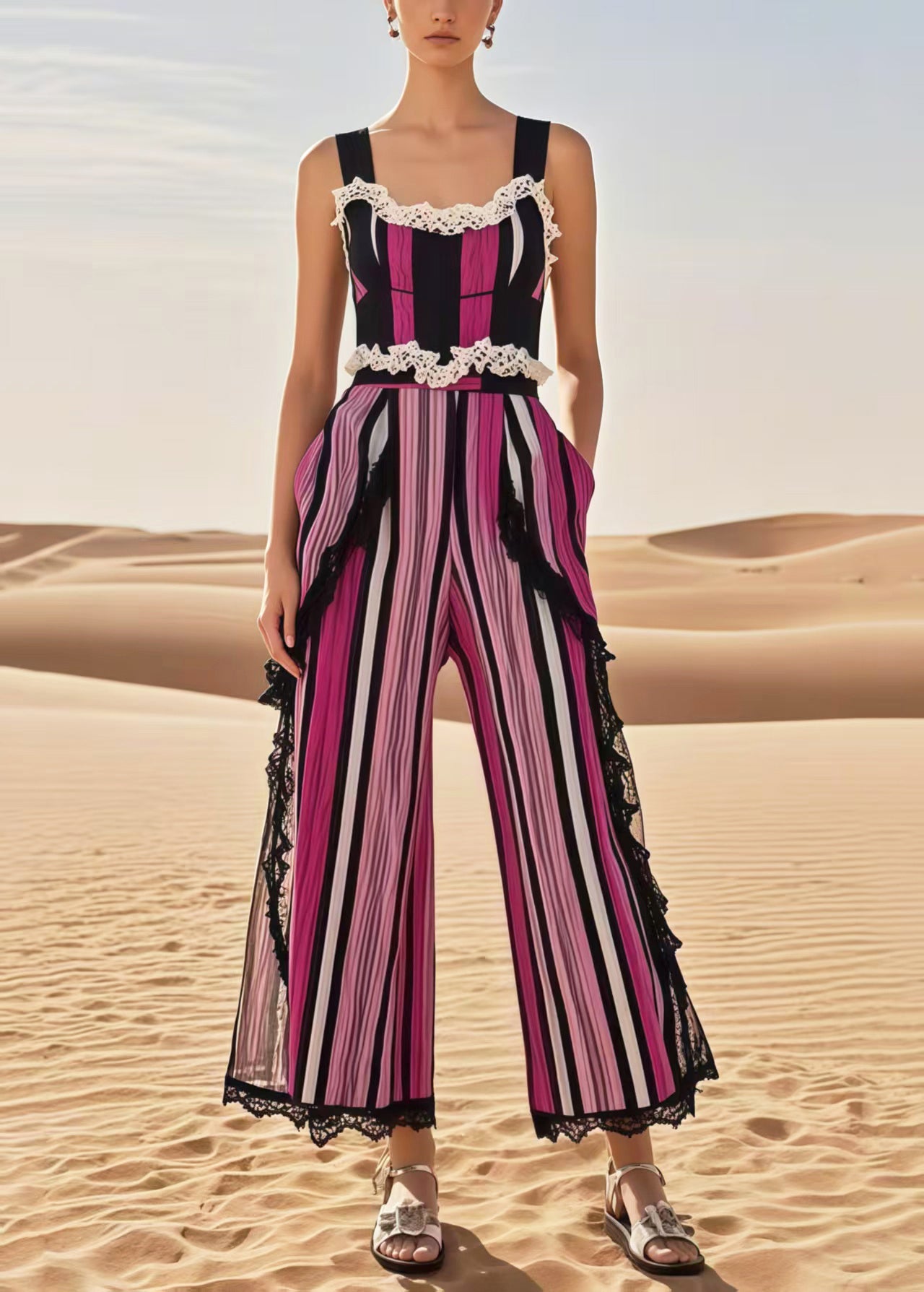 Italian Multicolour Striped Patchwork Lace Jumpsuits Summer