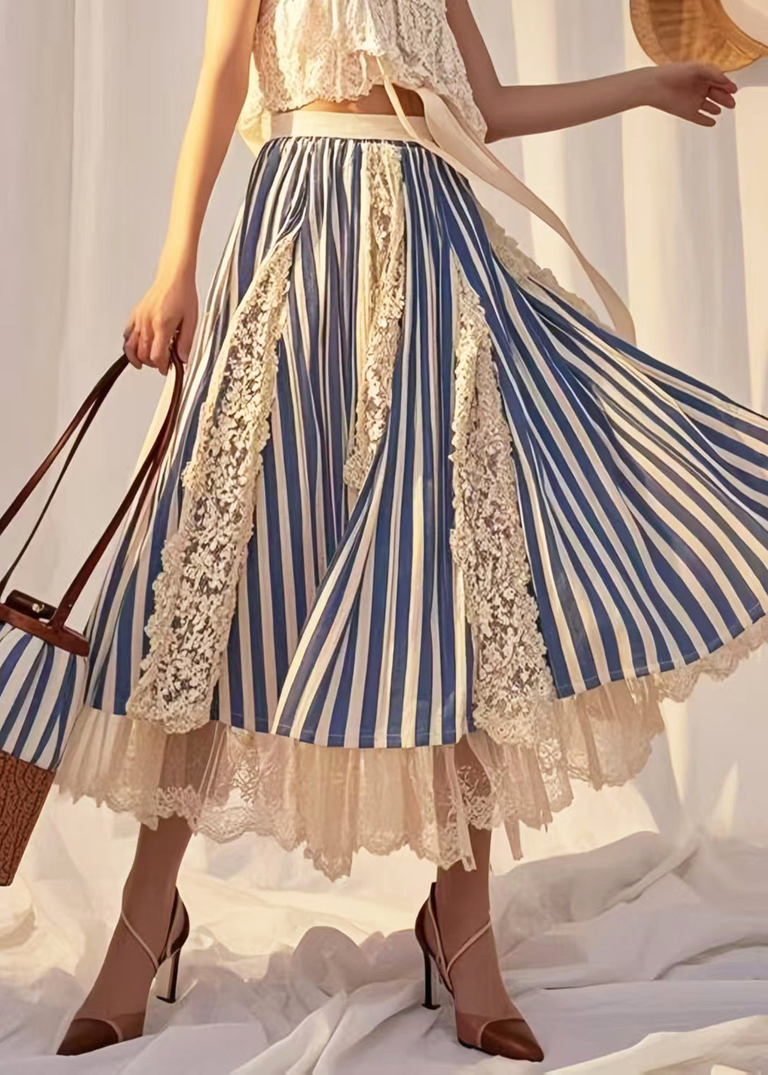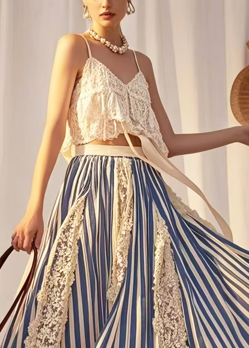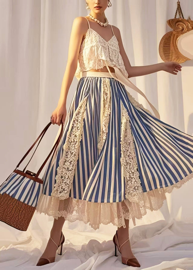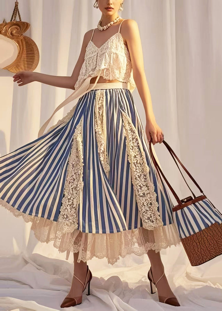 Modern Blue Striped Patchwork Lace Holiday Skirt Summer