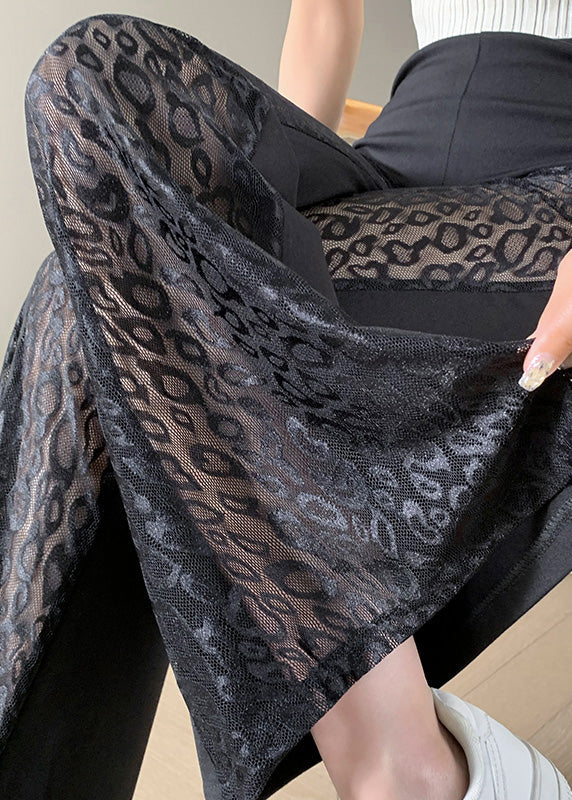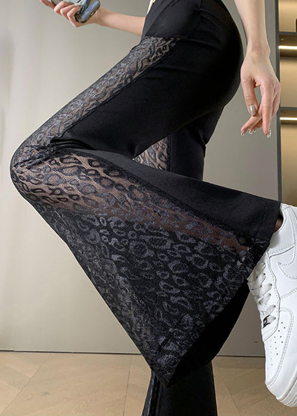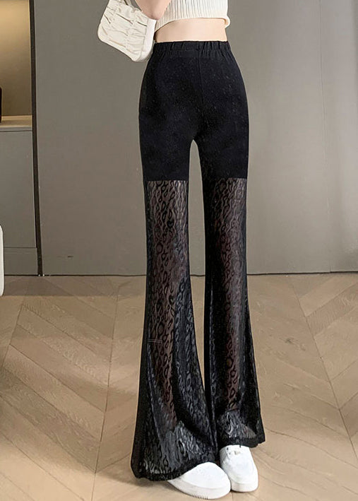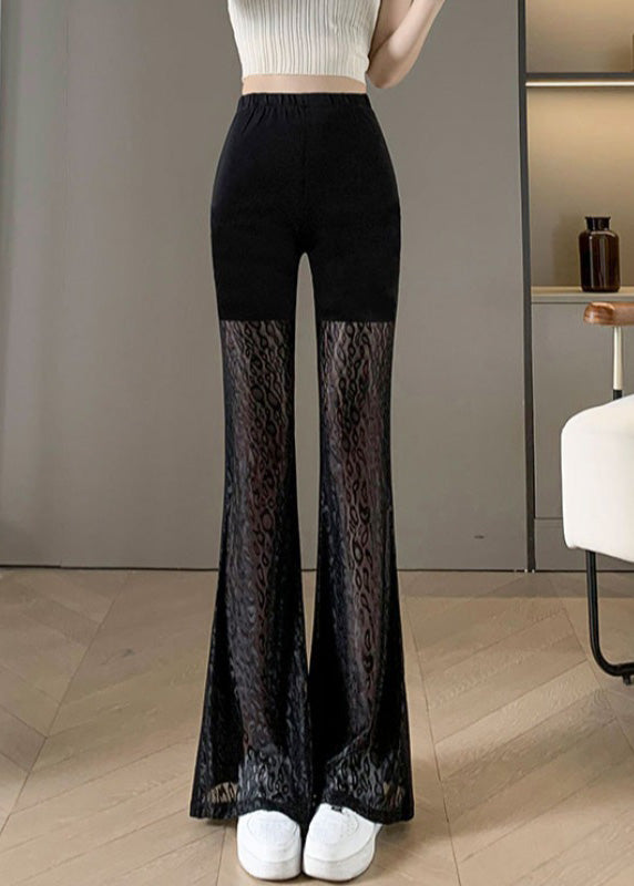 2025 New Black Lace Splicing High Waist Bellbottom Pants Summer