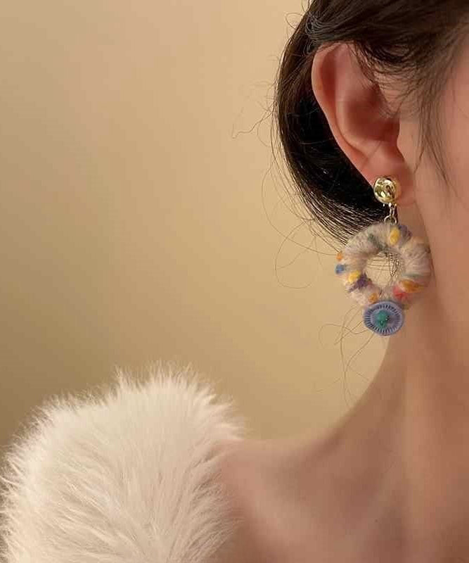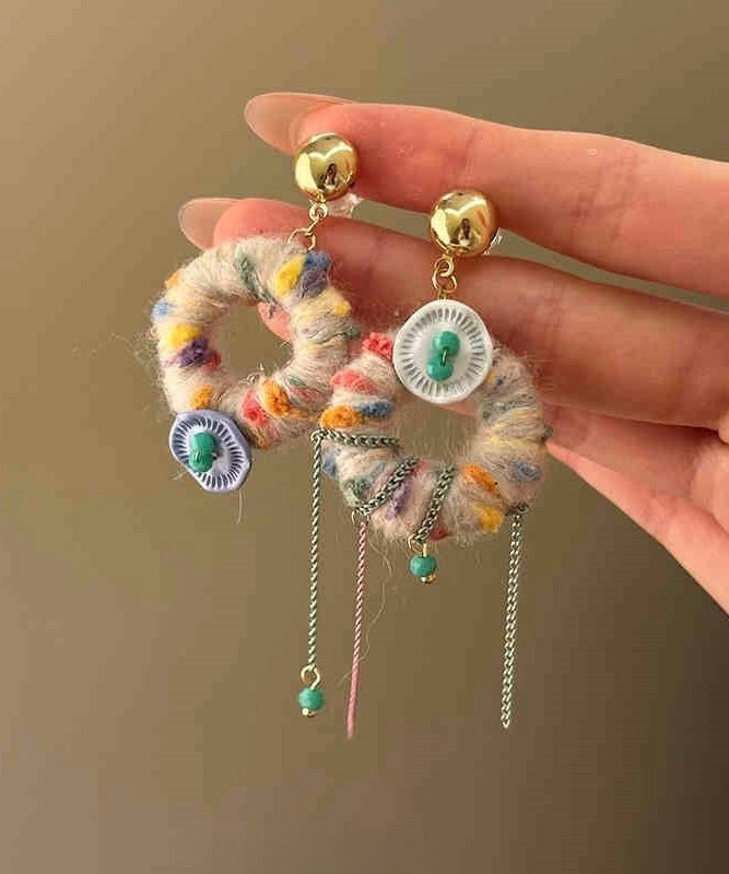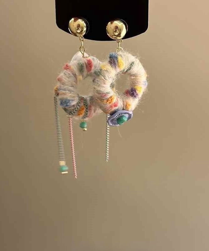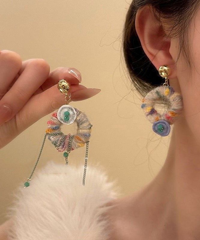 Beautiful Alloy Asymmetrical Knitting Wool Tassel Drop Earrings