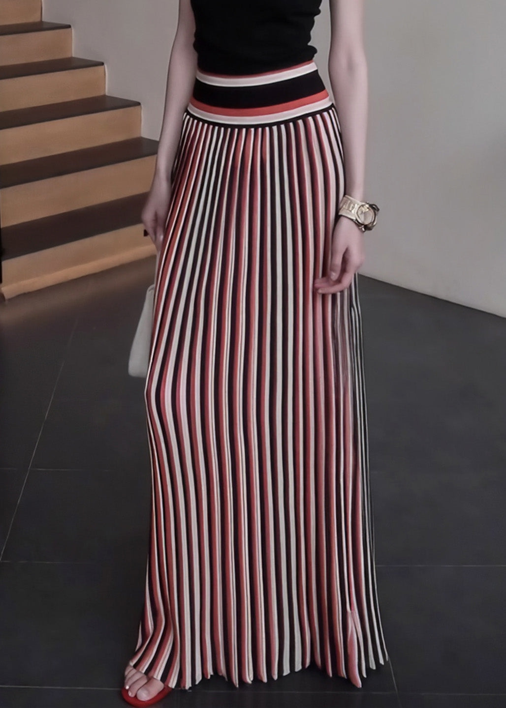 Bohemian Red Striped Silm Fit Holiday Straight Skirts Spring