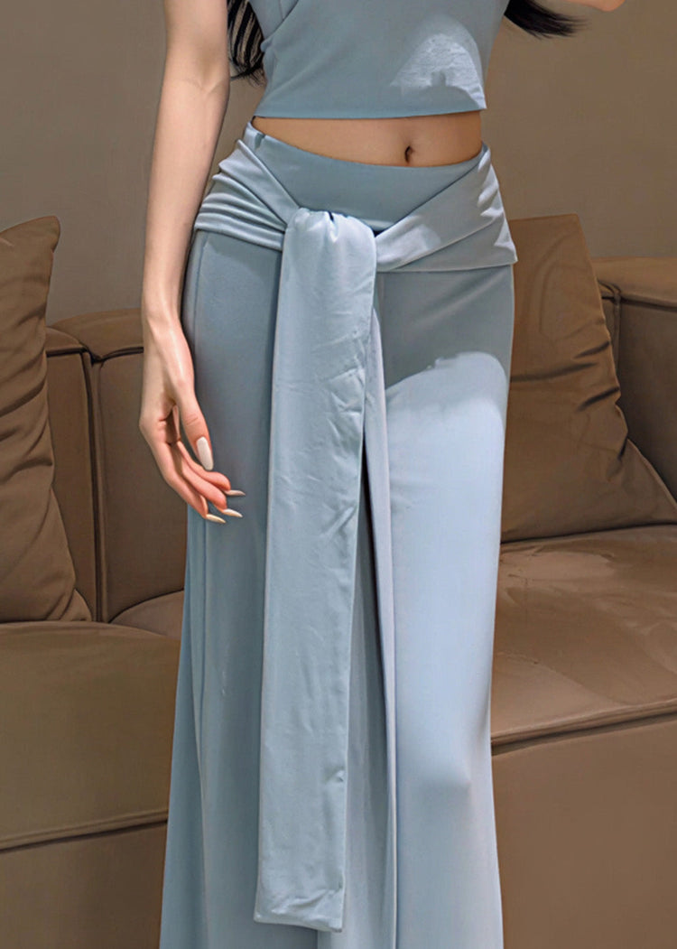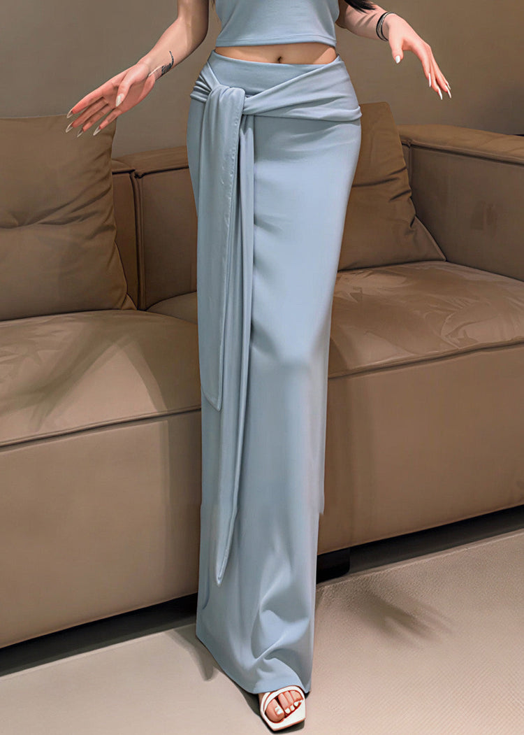 Italian Sky Blue Wraped Cotton Straight Skirts Spring
