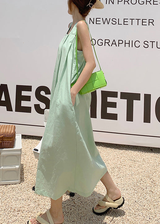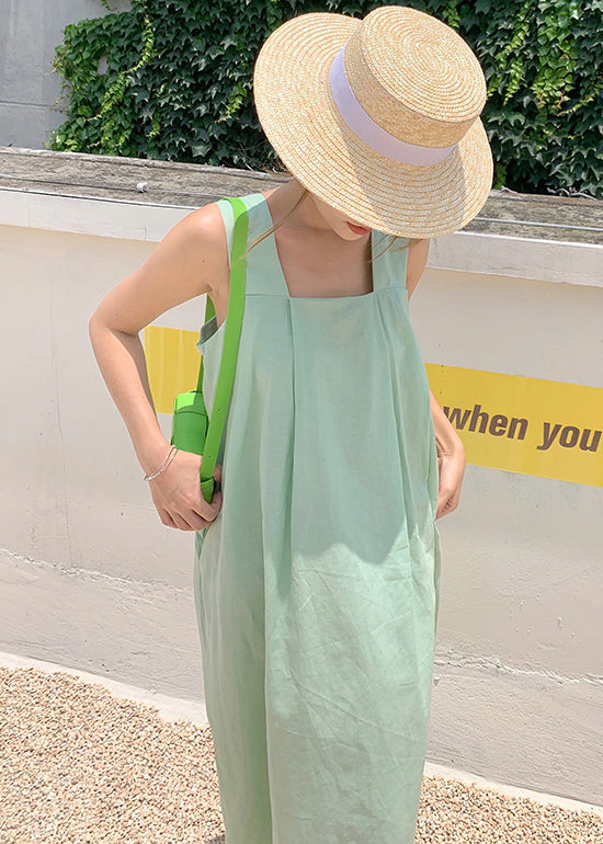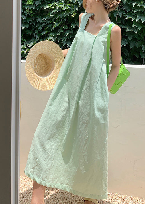 Organic Green Backless Pockets Cotton Long Dresses Summer