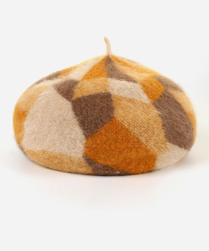 Stylish Coffee Faux Leather Patchwork Beret Hat