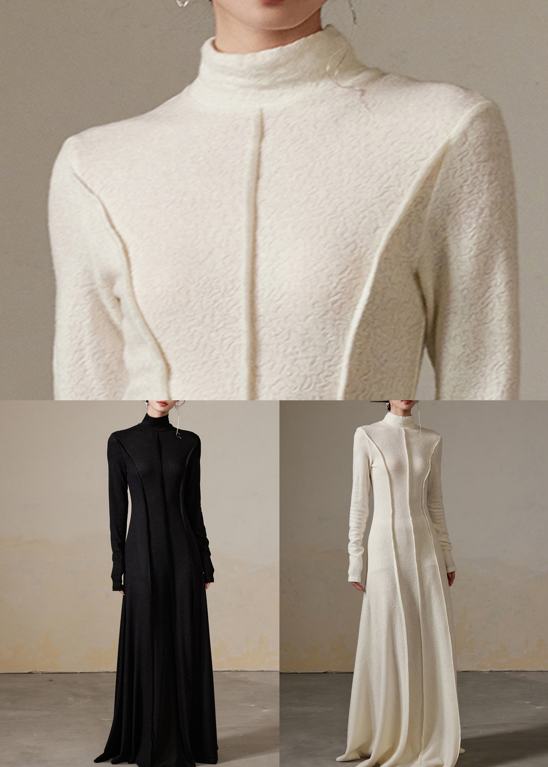 Slim Fit White Turtleneck High Waist Cotton Long Dress Winter