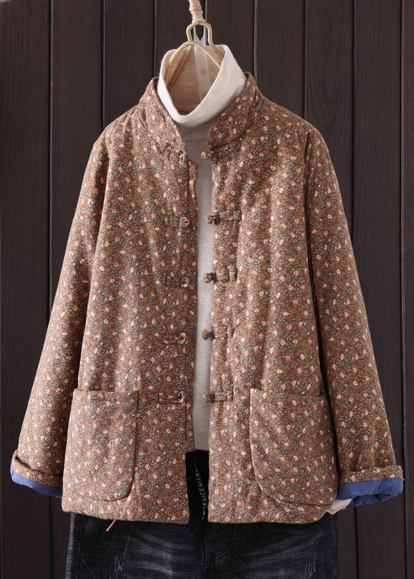 Art Red Print Button Pockets Thick Coat Winter