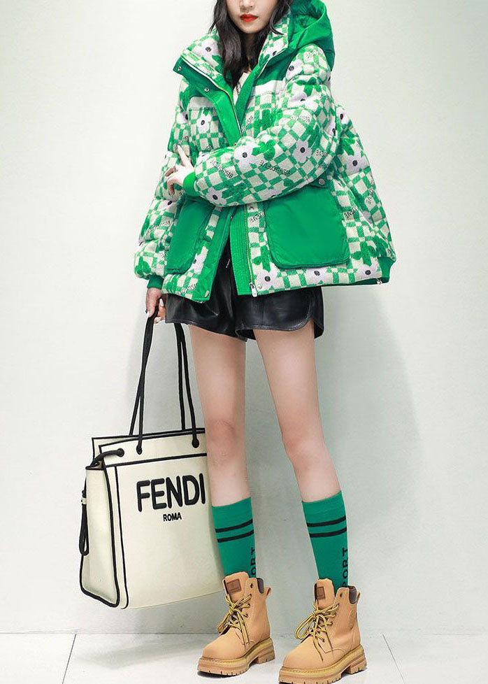 Beautiful Green Hooded Patchwork Print cotton blend Canada Goose Jacket Winter