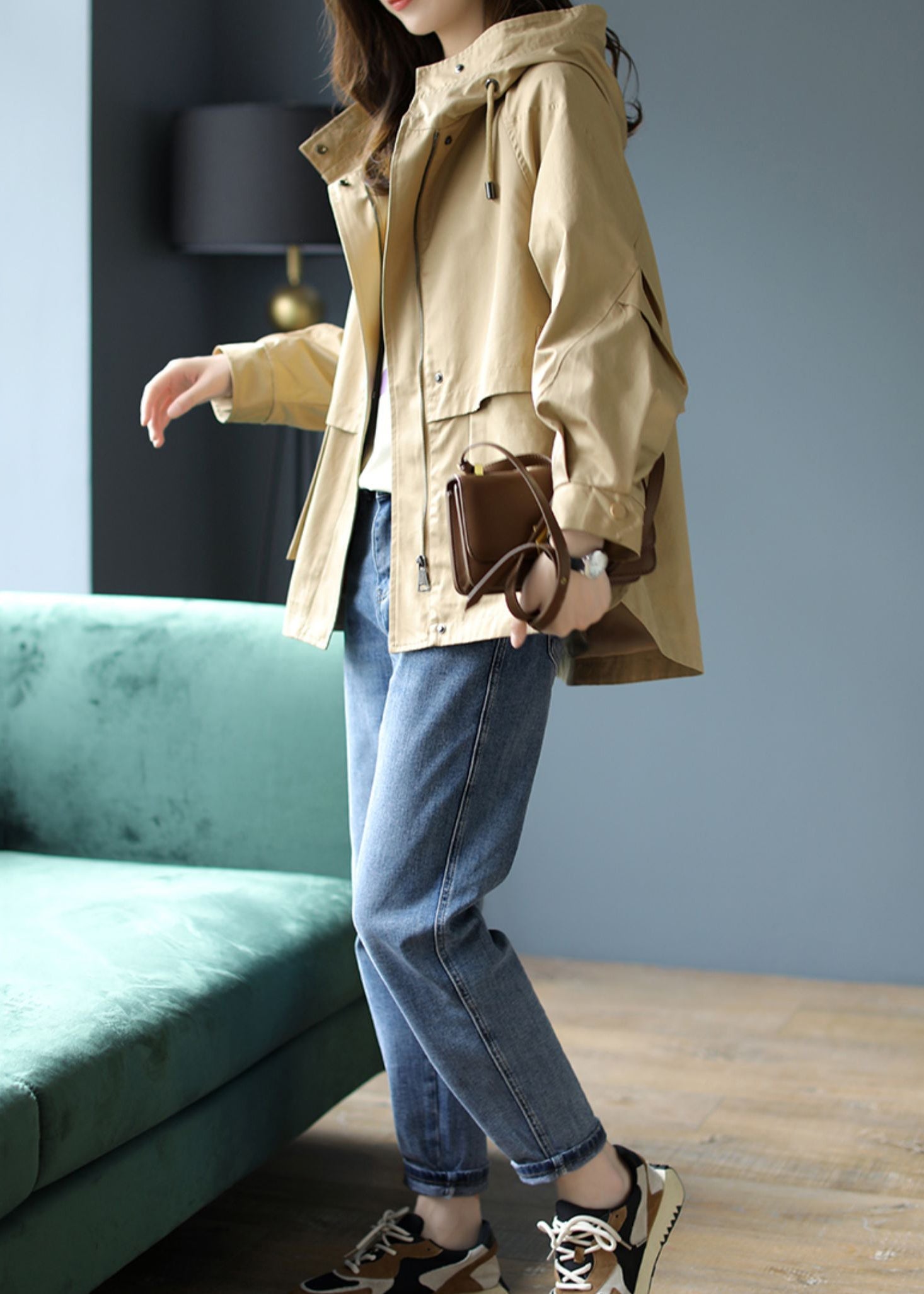 Casual Khaki Hooded Patchwork Cotton Coat Spring