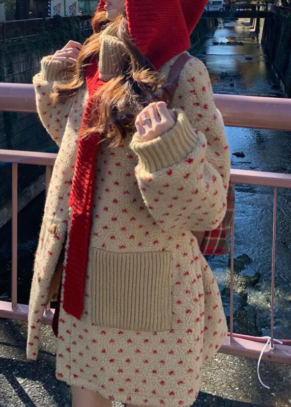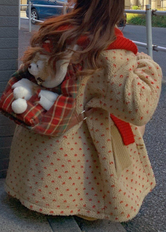 Cute Yellow Turtleneck Pockets Zippered Faux Fur Coats Lantern Sleeve