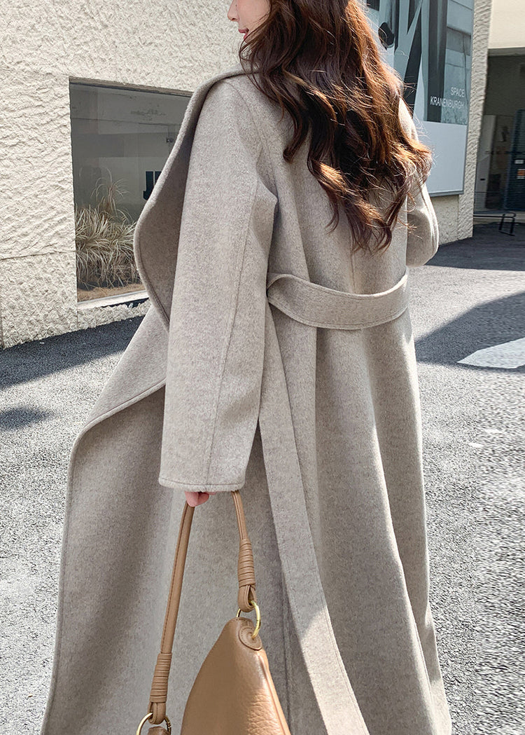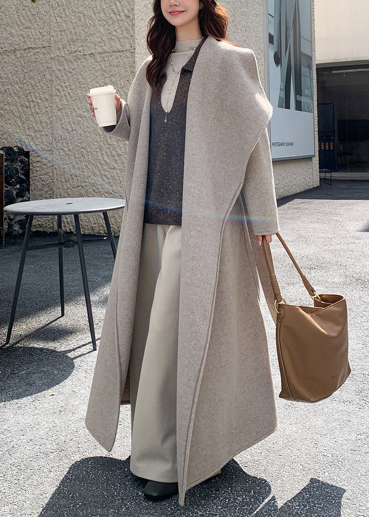 French Apricot Oversized Peter Pan Collar Woolen Trench Coats Winter