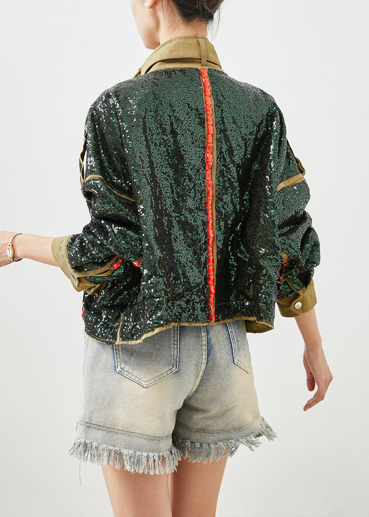 French Army Green Sequins Oversized Drawstring Jacket Fall