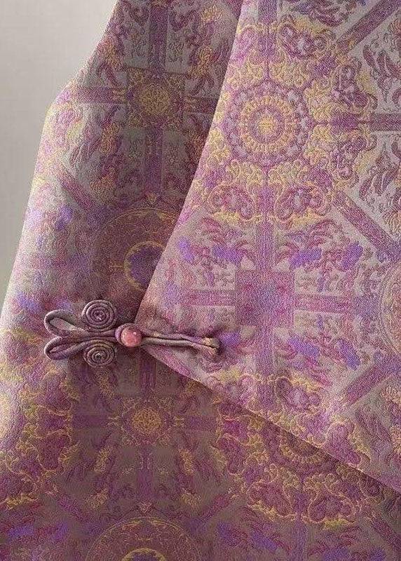 Jacquard Purple Stand Collar Asymmetrical Waistcoat Sleeveless