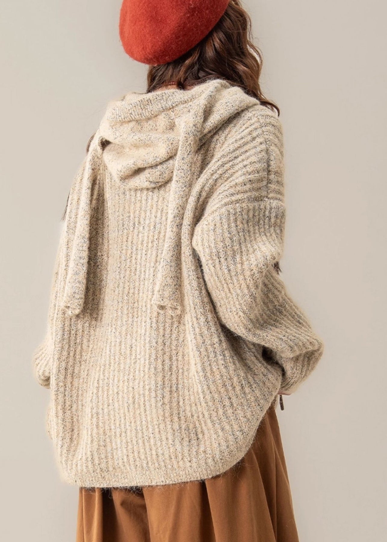Original Khaki Hooded Button Cozy Knit Coat Spring