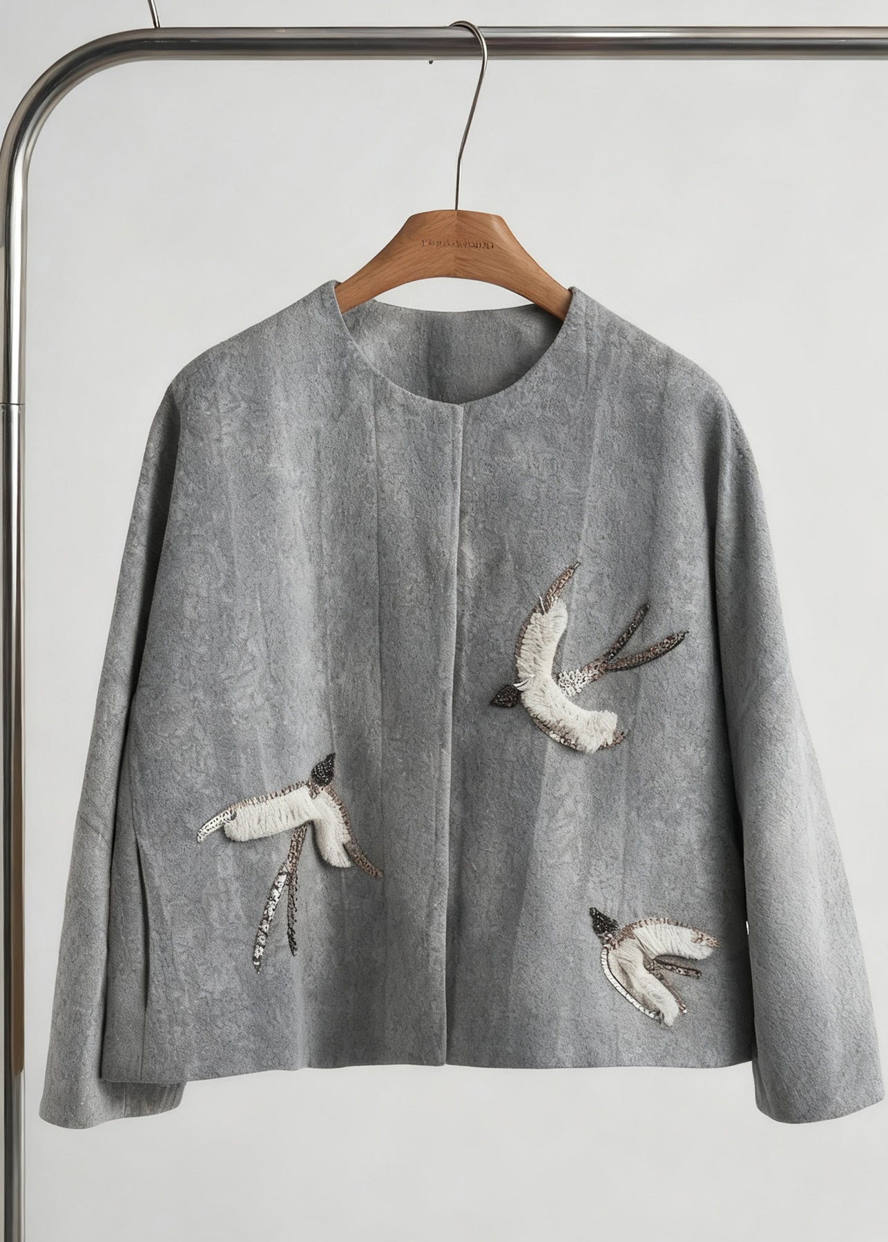 Style Khaki Embroidered Jacquard Silk Velvet Coat Outwear Fall