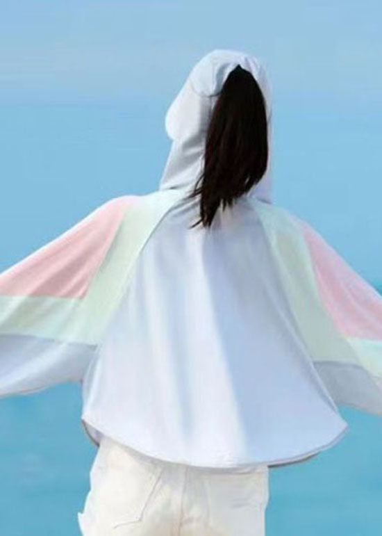 Stylish Light Purple Hooded Zippered Patchwork Ice Silk UPF 50+ Coat Summer