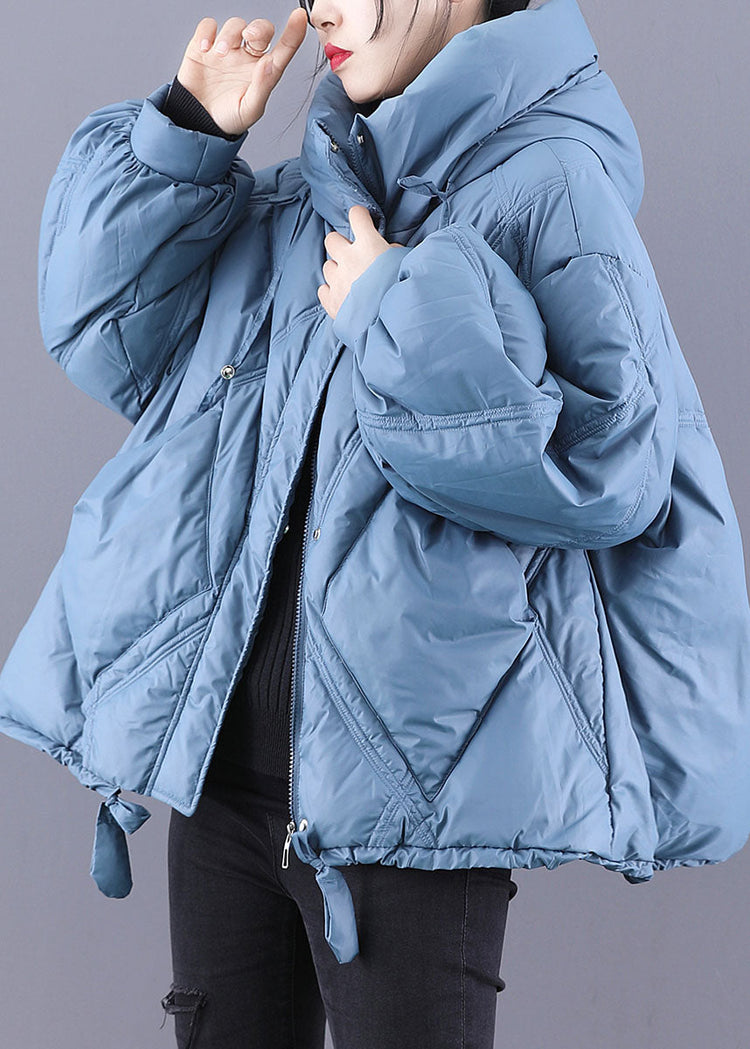 Unique Blue Hooded Cloak Warm Winter Duck Down Puffers Coat